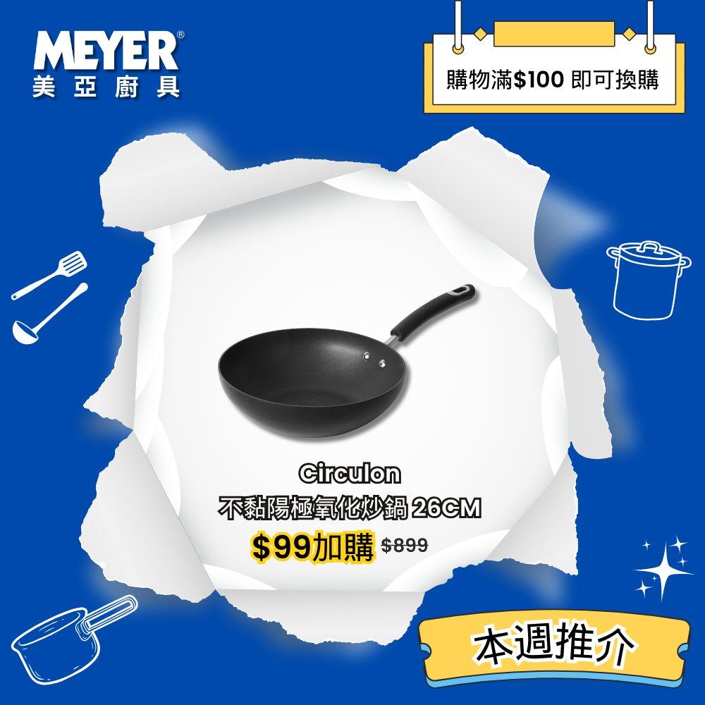 此外,購物滿$100即可$99加購Circulon Total不黏陽極氧化炒鍋26CM(原價$899)。優惠須自行加入購物車,請於結帳前確保換購產品成功顯示在購物車頁面。