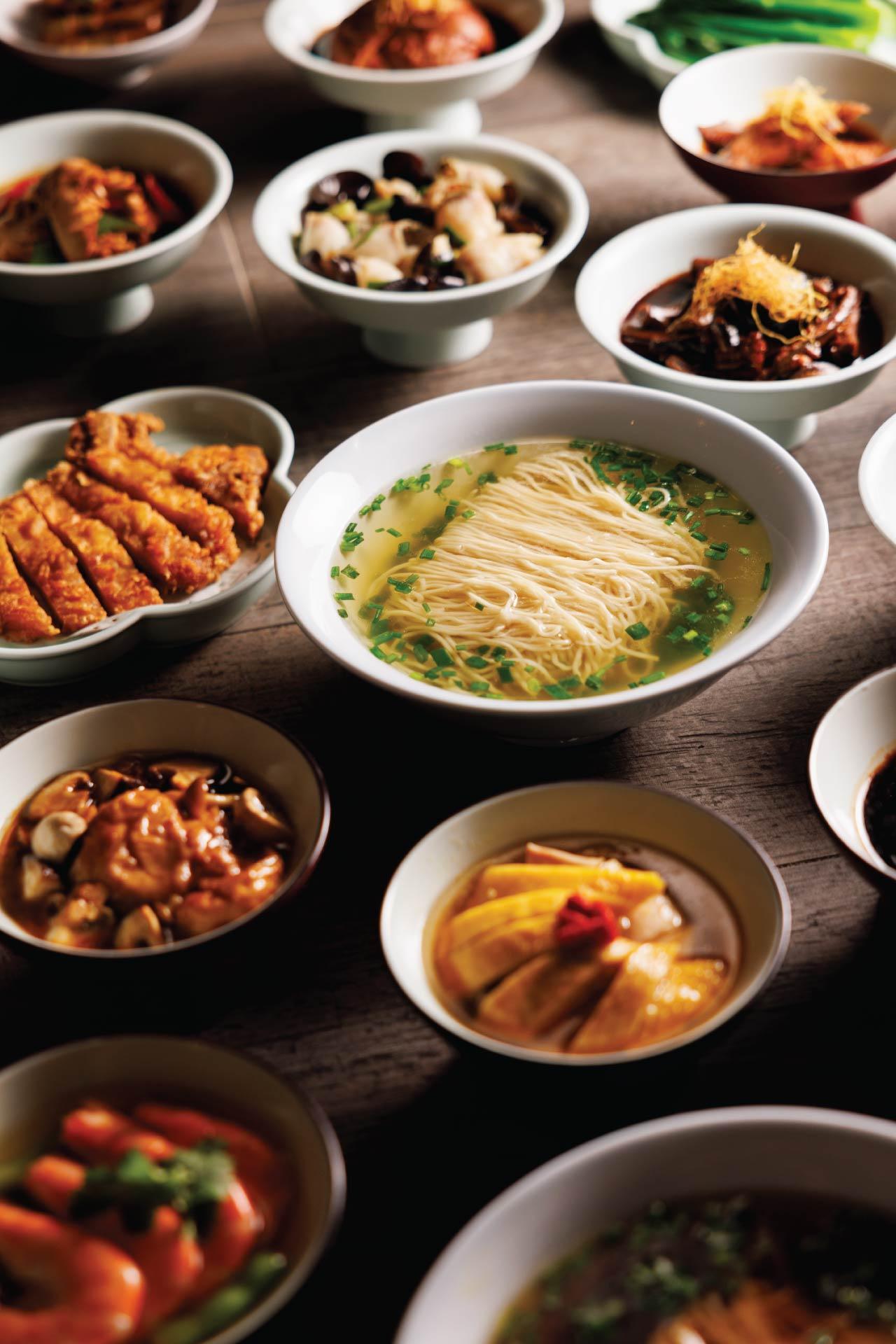 蘇州麵食少不了經典蘇州澆頭,店舖提供逾30種蘇州冷熱澆頭讓食客選擇,包括嫩滑開胃的口水汁轉彎($19)、鮮香爽彈的蝦油露鮮蝦($39)、晶瑩通透的鎮江水晶肴肉($29)等;而經典現炒熱澆頭包括擁有超過500年歷史的經典蘇式燜肉($49)、選用江蘇太湖地區黃鱔入饌的蝦爆太湖鱔絲($59)、以新鮮豬肉入饌的玫瑰烤鮮肉方($49)等。