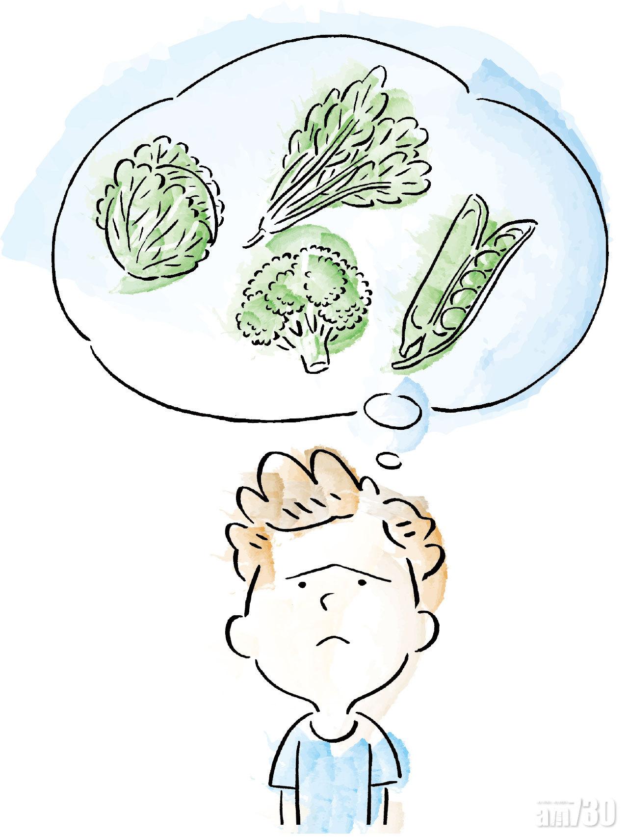 英國膳食組織調查發現,九成青少年及兒童未能達到每天5份蔬果的指標,而小孩最抗拒的蔬菜計有椰菜、菠菜、西蘭花和青豆等。實驗顯示施軟功最奏效,就讓他們摸摸西蘭花、撥弄青豆和聞一聞蒜茸炒菠菜的香氣,但不要強迫他們吃;漸漸與抗拒的食物「玩熟了」,才鼓勵孩子試試味道,告之各式蔬菜所含的維他命及對身體的好處。