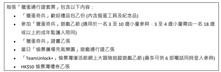 •愉景灣沙灘獵蛋奇兵「獵蛋通行證套票」一張