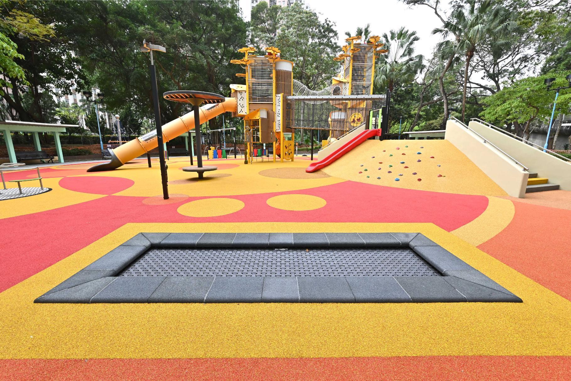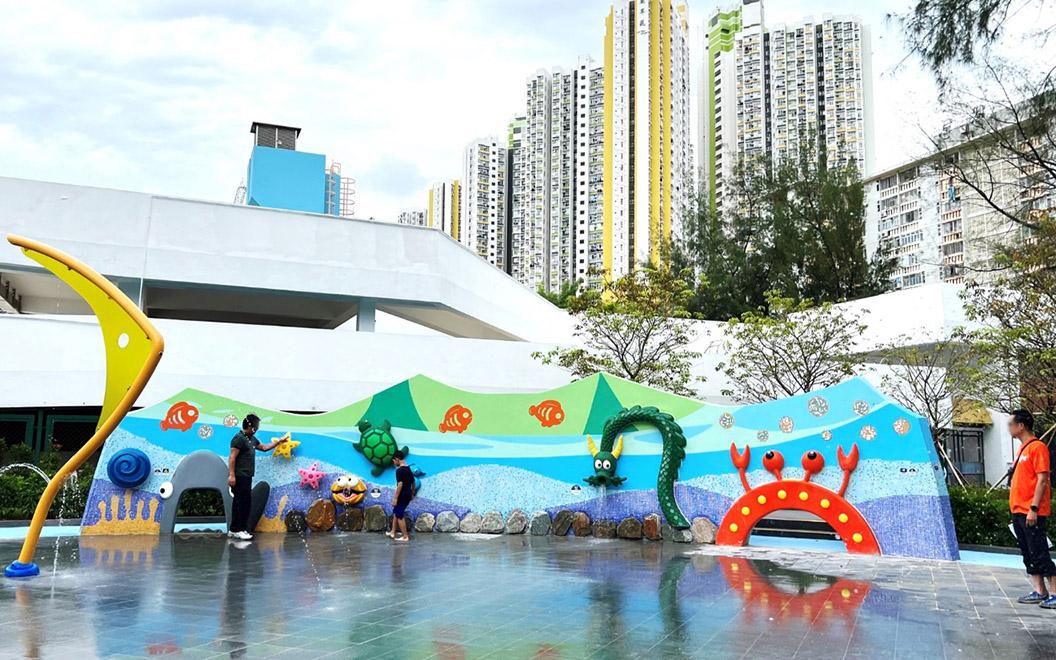超過6萬8千呎的深水埗兒童遊樂場向來是小朋友的放電首選。場內主要分為3個區域,分別是「沙丘地堡」、「森林草原」及「綠洲噴泉」。沙丘地堡設有必玩的康文署轄下最長逾6米及最高逾13米的攀爬塔、經典滾筒滑梯,以及訓練小朋友觸感的沙池;森林草原提供音樂地帶的花花鈴鐺、音樂敲擊管、花瓣鼓,讓玩家享受美妙音樂;綠洲噴泉則設有攀爬繩網、嬉水感官牆、鯨魚噴泉、八爪魚噴泉、魚兒同樂、彈跳天地的彈床、幼兒彈床。