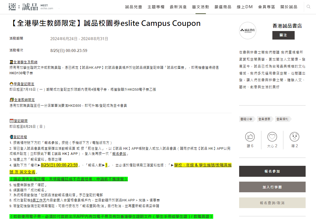 學生優惠|香港師生暑假限定「誠品校園券」7月15日前登記 高達$130購書優惠!