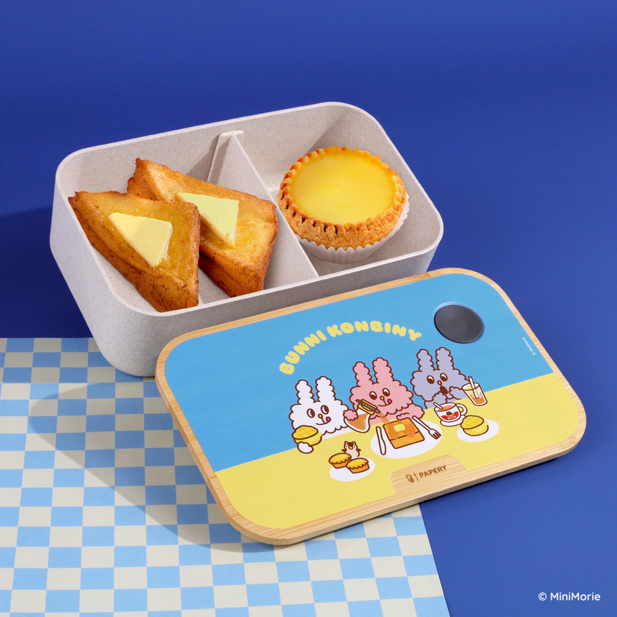 BUNNI KONBINY甚至為粉絲帶來主題環保餐具,當中包括環保飲管、餐具套裝及環保便當盒。便當盒採用高品質的稻殼纖維和竹材製作,不含BPA安全無毒,而且耐溫耐冷,適用於微波爐、冰箱,讓BUNNI KONBINY陪伴每一餐。