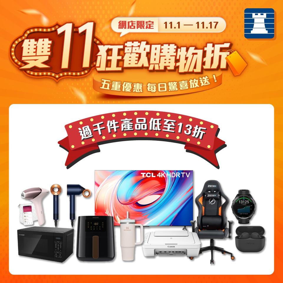 更有超過1,000件精選產品低至13折發售,以及總值超過 $1,150的折上折限時優惠碼,同場加映超級品牌優惠,為你源源送上五重雙11驚喜優惠,齊齊盡情購物狂歡!