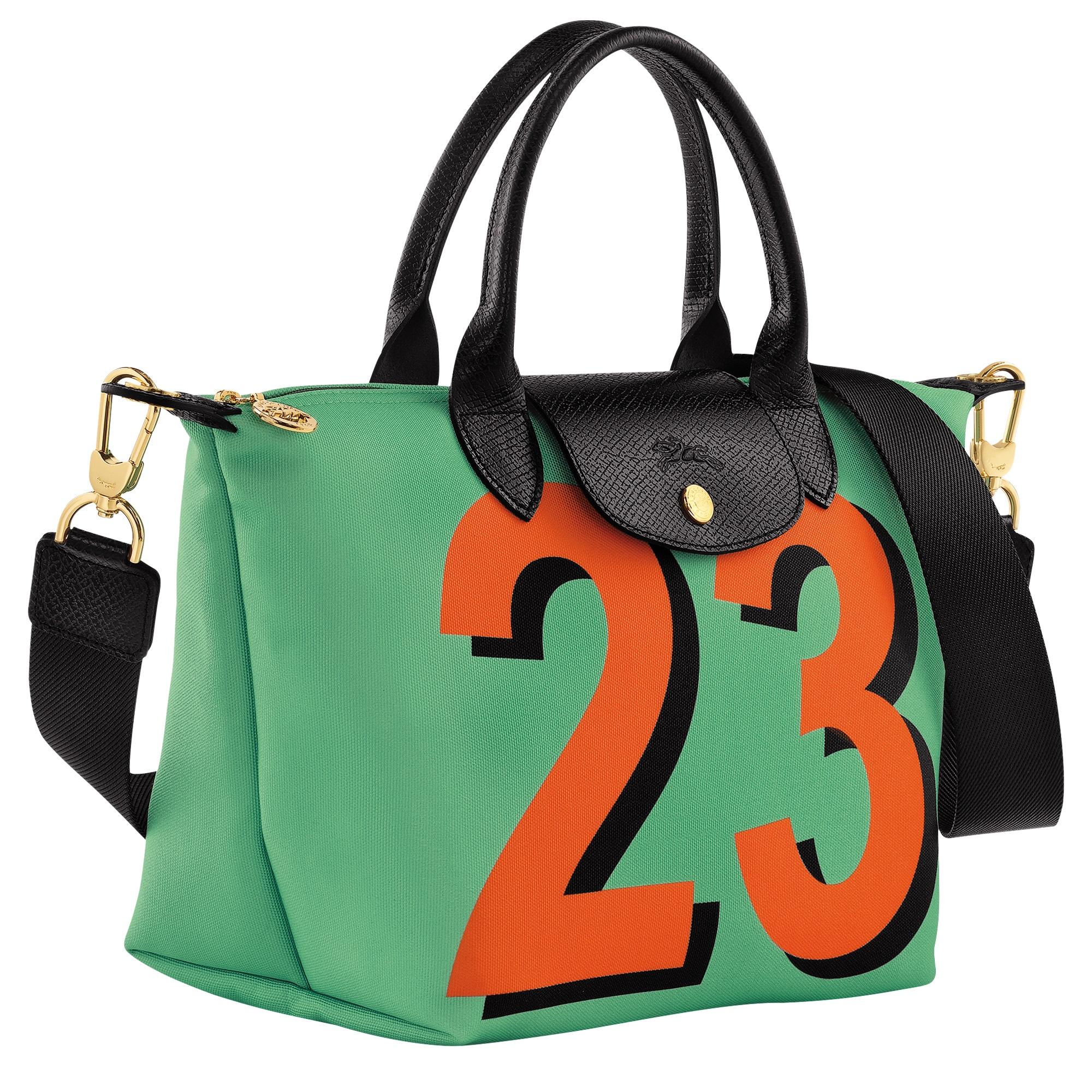 另一款中型長手柄可揹上膊的粉紅手袋,在右上角飾有一隻迷你兔仔皮革徽章,兔兔咬著一個青綠色小手袋,還有一對心心眼,可愛有趣。另外還有香港限定顏色,分別在青綠色及粉紅色手袋上飾以橙色23字樣,顏色鮮明搶眼又具節日氣氛,附有長帶可揹上膊使用。(查詢:2736 7328)