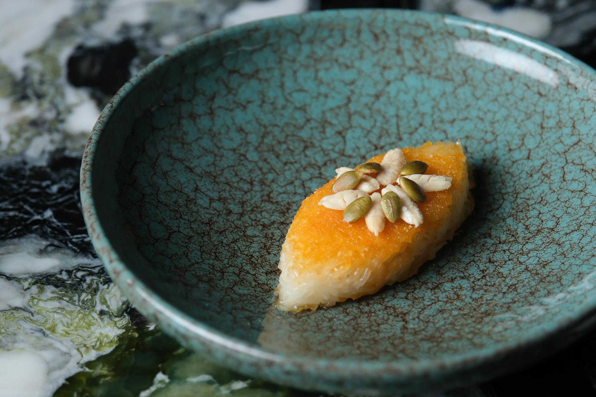 主菜方面,則有山藥清湯羊腩,以清湯烹調,於湯底中加入薑、山藥、甘筍等滋補食材,然後以檸檬葉、韭菜花醬和腐乳調節羊腩羶味,既保留羊肉暖身功效,入口更清爽不油膩。還有香草烤鴿,有別於一般紅燒乳鴿,獨特秘制醬汁以迷迭香、豆豉、柱候醬、面醬及芝麻醬混製而成,將醬汁燉八小時後用作醃製,最後以低火烤熟乳鴿,香氣撲鼻裡餘肉汁豐富。特別推介家鄉糖酒糯米飯,主廚以家鄉新會的獨特烹調方法改良了這道菜式,蒸糯米時加入紅糖及九江米酒,其豉香清雅且醇厚甘潤,蒸好後以拌代替炒,保留米飯中的水分同時揮發多餘酒精,因此吃起來甜香軟糯,散發出淡淡酒香,最後加入欖仁及南瓜仁作點綴,令口感更添層次。全新「憶味龍饗」嚐味菜單由即日起至2024年3月31日供應,定價每位港幣1,088元,部份菜式亦提供單點選擇。