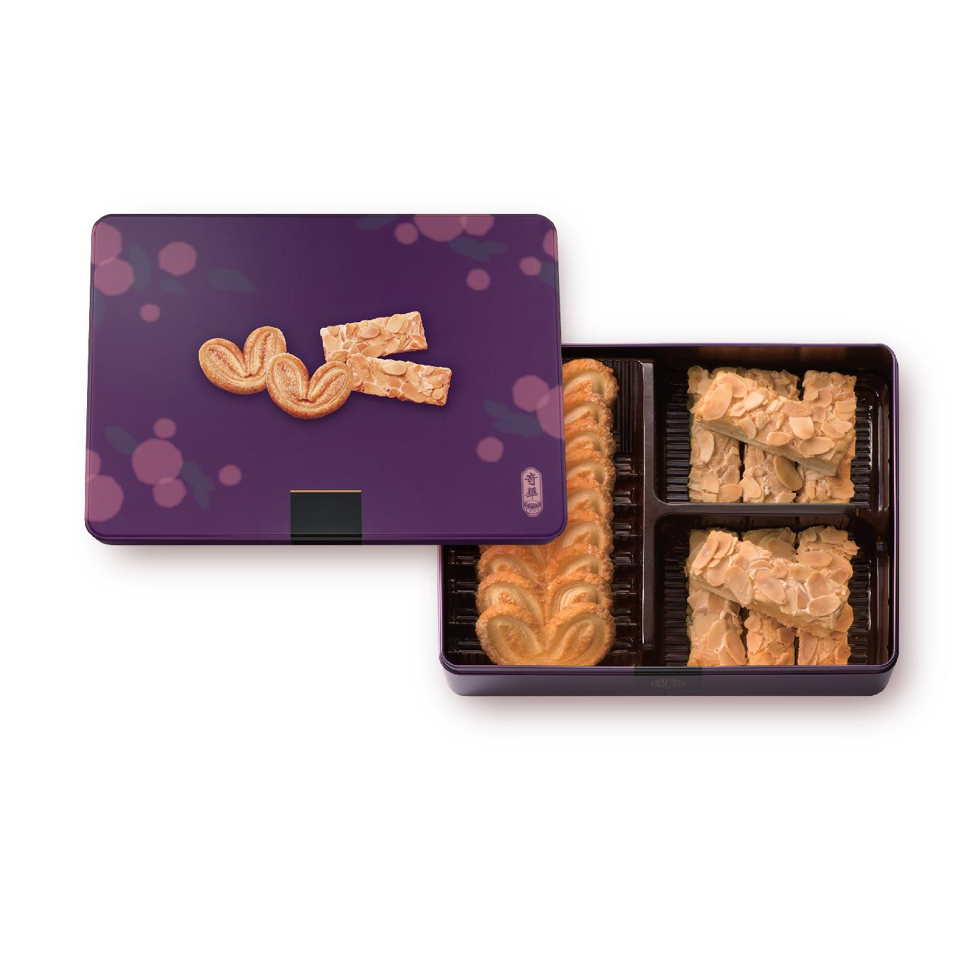 奇華餅家賀年小食禮盒選擇眾多、包羅萬有,不論是酥脆的「蝴蝶酥禮盒」、「什錦杏仁條禮盒」、「蝴蝶酥杏仁條禮盒」,或是鬆脆香口的「精裝什錦蛋卷」、「什錦曲奇禮盒」及「什錦鳳凰卷禮盒」,均深受大人小朋友歡迎。賀年小食禮盒配色以喜慶的紅色、金色、紫色等作主調,新春喜慶感十足,寓意祝賀大家大紅大紫、金銀滿屋!