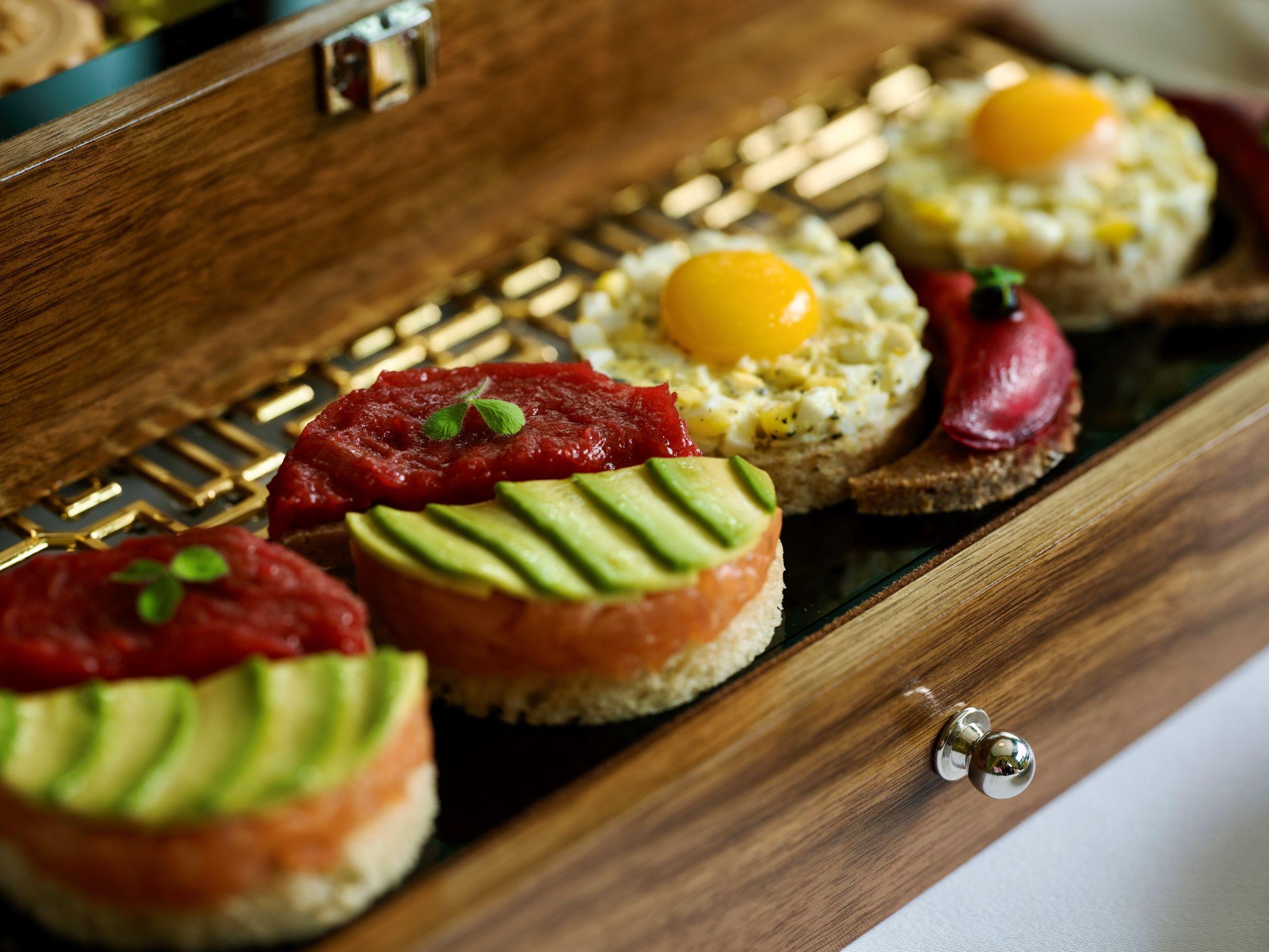 「映月下午茶」由港島香格里拉行政主廚敖旭維(Uwe Opocensky, Executive Chef)及資深行政副總廚江志明師傅攜手合作,配合中秋節將至,特別推出以精緻月餅造型為主題的「映月下午茶」。精選甜點包括層次豐富的雲呢拿忌廉配夏季莓果蜜餞焦糖脆餅、入口清新的檸檬慕絲配柚子忌廉果仁糖海綿蛋糕、廣受歡迎的濃郁開心果朱古力配紅桑子蜜餞泡沫蛋糕,以及香甜細膩的雲呢拿慕絲配山核桃果仁糖鹽焦糖蛋糕。而鹹點方面則包括紅菜頭配羊芝士意式雲吞、入口香軟的鵝肝醬配大黃及羅勒三文治、煙三文魚配牛油果及檸檬三文治、口感細緻綿密的松露蛋三明治、英式鬆餅配忌廉及果醬,另配精選香格里拉茗茶或咖啡。「映月下午茶」每2位港幣 888 元,另收加一服務費,現場更有弦樂演奏,相當愜意。