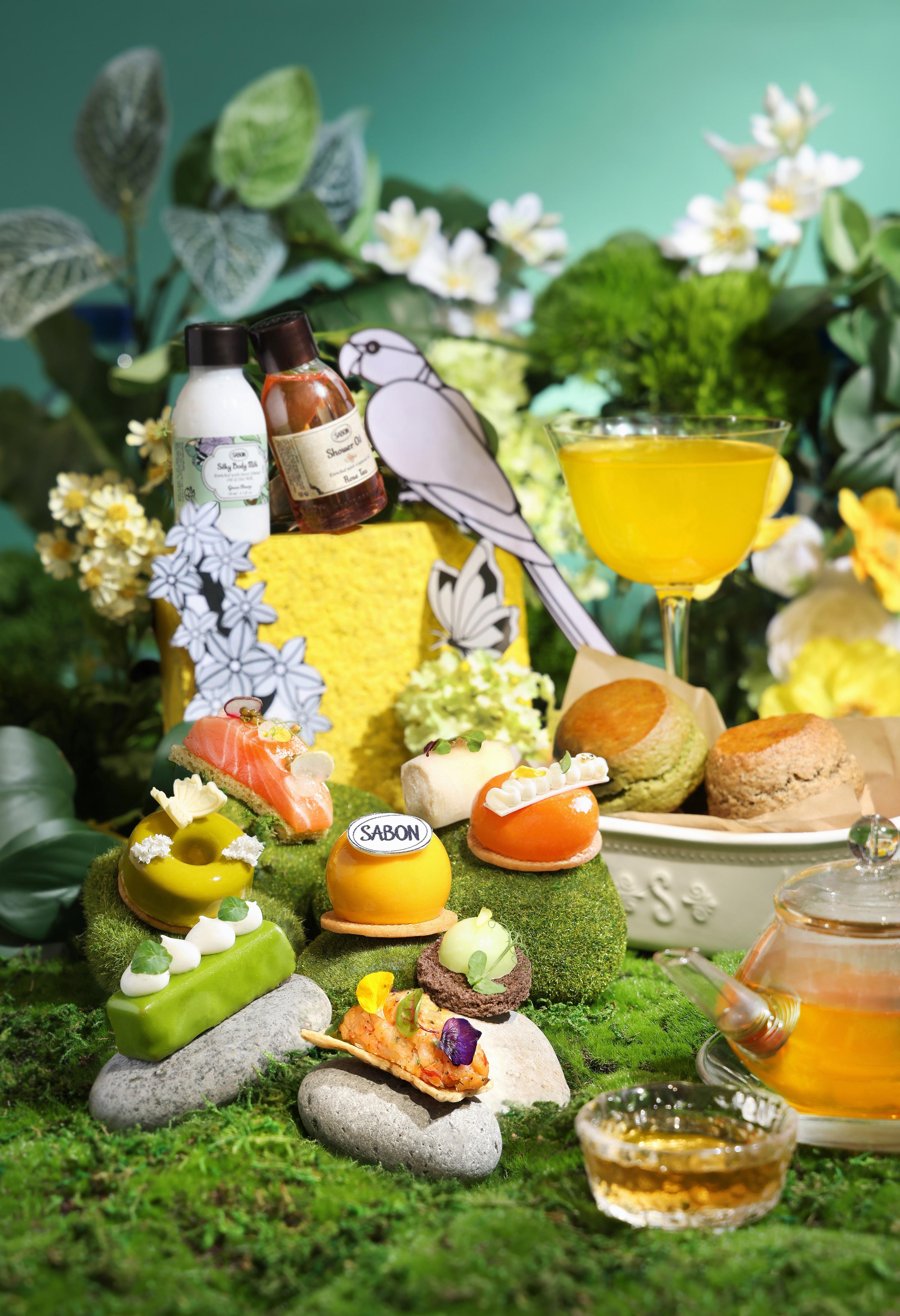香港港麗酒店樂聚廊與美容及家居香薰品牌 SABON合作,在 4 月 15 日至 5 月 31 日期間推出「味遊感官花園」下午茶,酒店廚藝團隊以 SABON最新推出的感官花園—翠綠微風及艷陽綠茵系列的香氛調子為靈感,將玫瑰、佛手柑等成份融入在下午茶中,擺盤更設計成充滿初夏氣氛的翠綠花園,賣相精緻食物也很吸引!