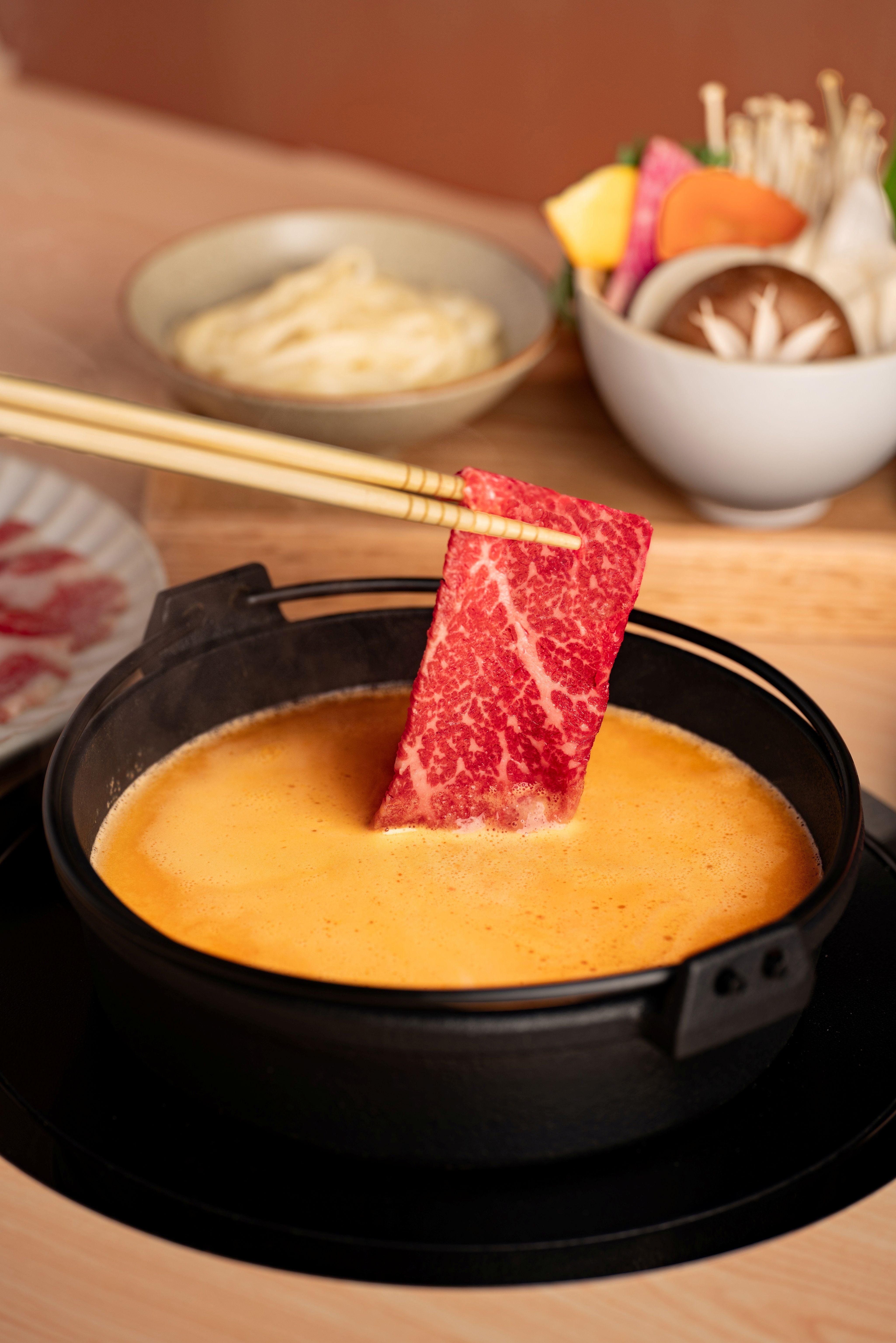 店家每款湯底均用上餐廳每日新鮮烹調的「一番出汁」作為湯膽,選用北海道利尻昆布、日高昆布及北海道「秋鮭」柴魚片製作而成的「一番出汁」高湯,每日在店內新鮮烹調,湯頭鮮味無窮。多款湯底中,必試每日限量80份的北海道海膽高湯涮涮鍋,嚴選來自北海道利尻島、羅臼和奧尻的 3 款北海道時令海膽,再混合「一番出汁」高湯,每口都是香濃海膽味,再配上 A5 級的北海道十勝黑毛和牛,奢華又滿足!其餘湯底分別是北海道牡蠣高湯、北海道傳統湯咖喱 以及北海道特選3.6牛乳湯和北海道昆布柴魚湯,全部都用上大量來自北海道當地的土產及食材炮製,絕不馬虎。