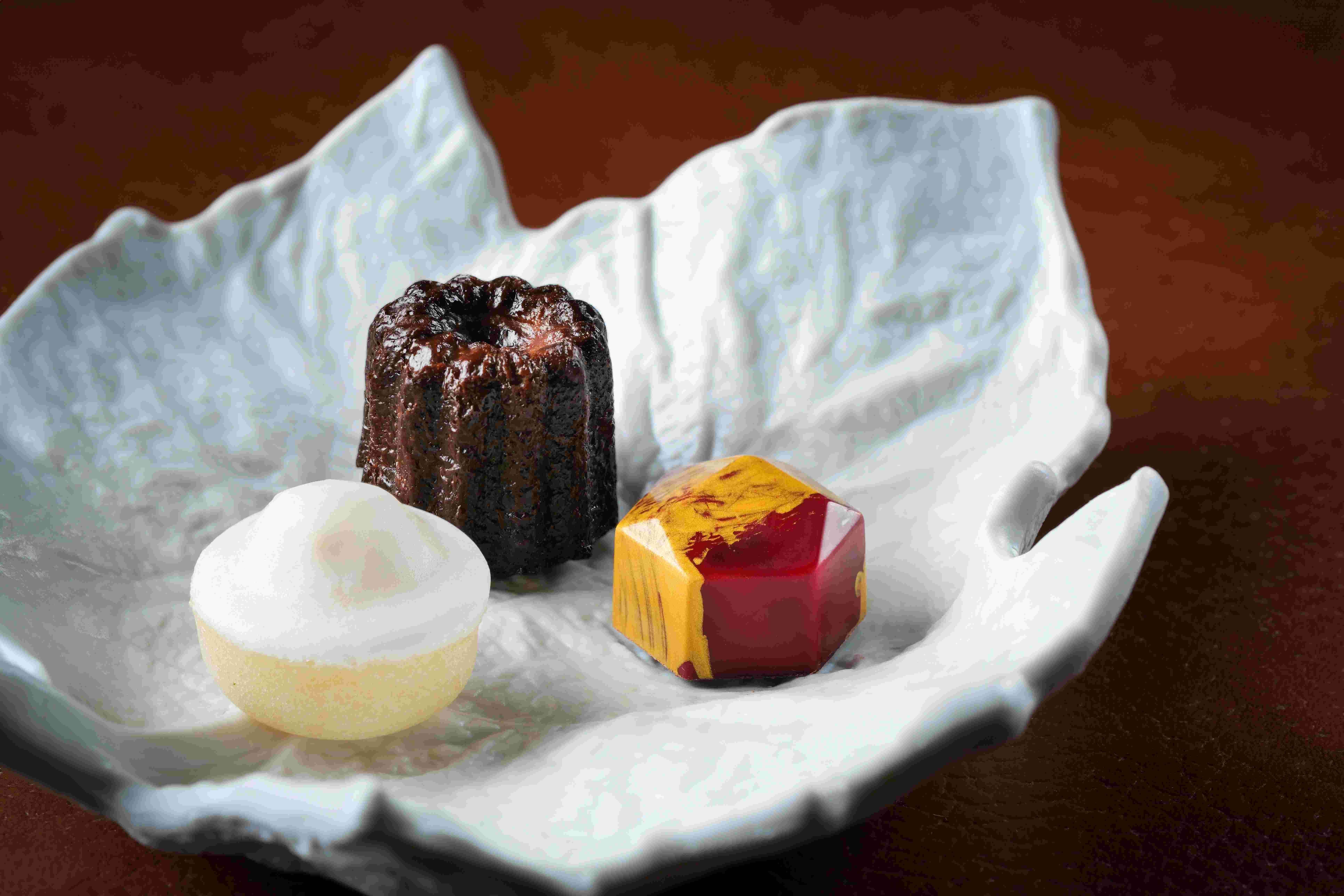 晚宴主菜共有兩道,先來的是由主廚 Emmanuel 設計的海鮮主菜「香烤多寶魚」,巧妙配搭蜆、燉蔬菜醬、意大利羅勒餃子、節瓜花等,每一口均充滿層次與變化;緊接而來是主廚 Shine 主理的「澳洲和牛肉眼排」,配搭馬鈴薯千層方塊、黑蒜等,濃而不膩,足見二人風 格的契合無間。壓軸登場的甜品同樣有兩道,分別為由 Emmanuel 主理的「杏仁玫瑰雪糕」,出奇不意巧配薰衣草,來一場首尾呼應;以及 Shine 親自創作的「Petit four 小甜點」,帶來不凡的驚喜,為客人送上愉快而難忘的句點。