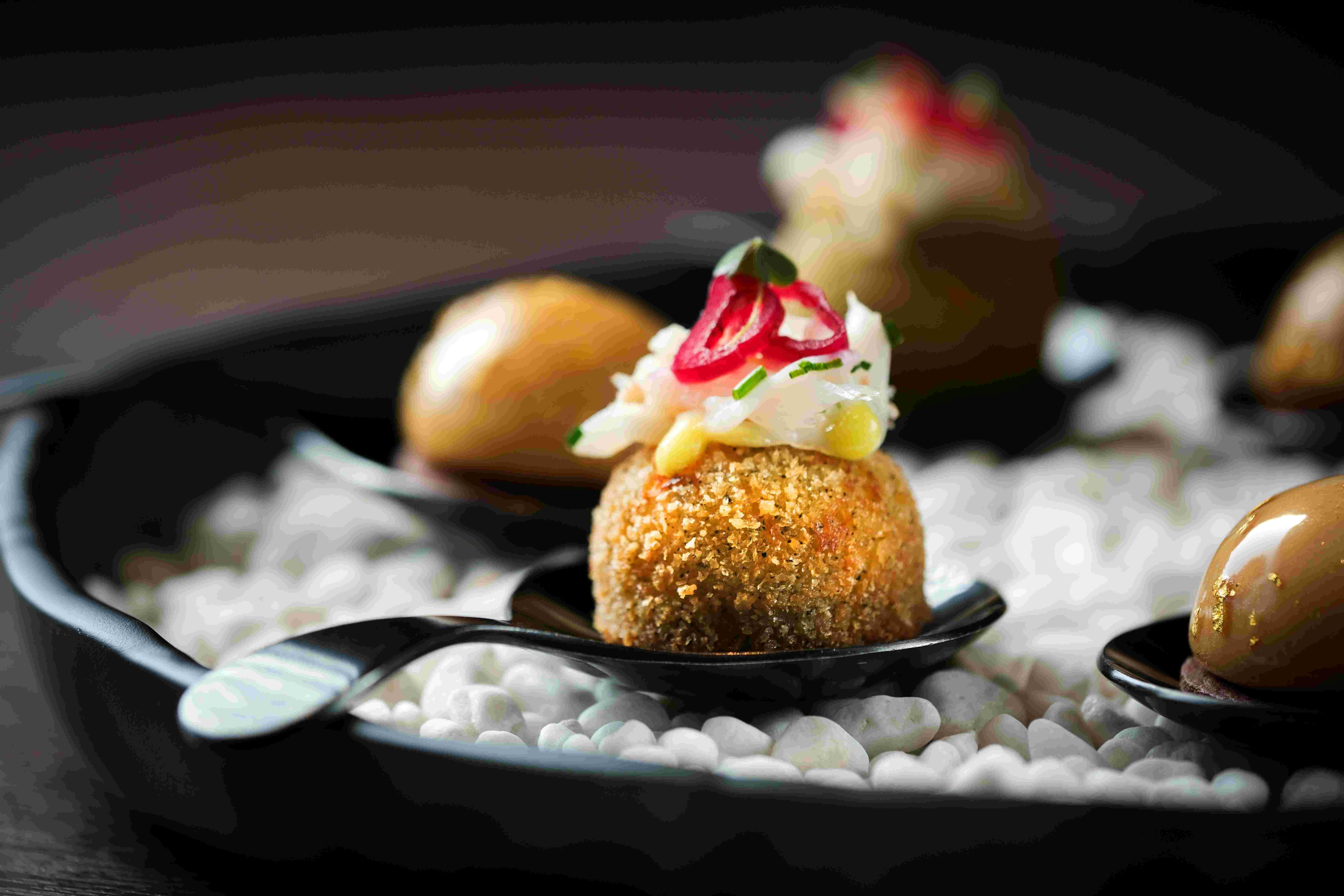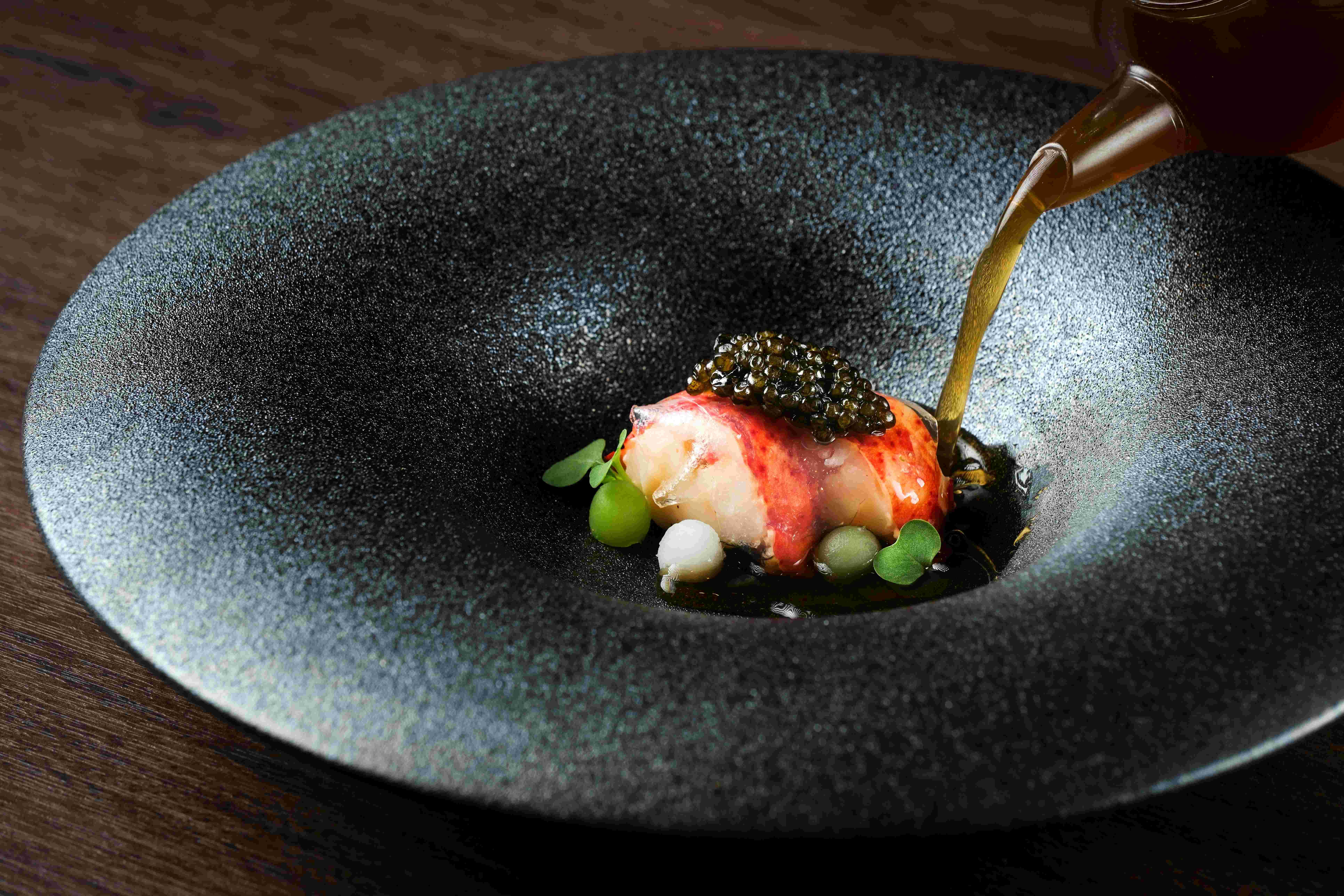 僅此兩場的晚宴,主廚 Emmanuel 將率先為客人送上第一道開胃前菜「甜番薯與薰衣草」, 巧借幽雅獨特的薰衣草香氣,把客人瞬間傳送至法國;主廚 Shine 將緊接其後,以兩道小 吃「炸亞拉斯加蟹餅」及「鵝肝慕斯」延續法國風情。小吃上場後,Emmanuel 即把準備 好的「法式烤雅枝竹『巴里古』| 黑松露撻」送上,繼續以當地特色食材突顯是次晚宴主 題。其後承接的是 Shine 創作的「法式龍蝦清湯」,以清新的自製番茄果凍、龍蒿,綴以矜貴 Kristal 魚子醬,為接下來的主菜部分作好準備。