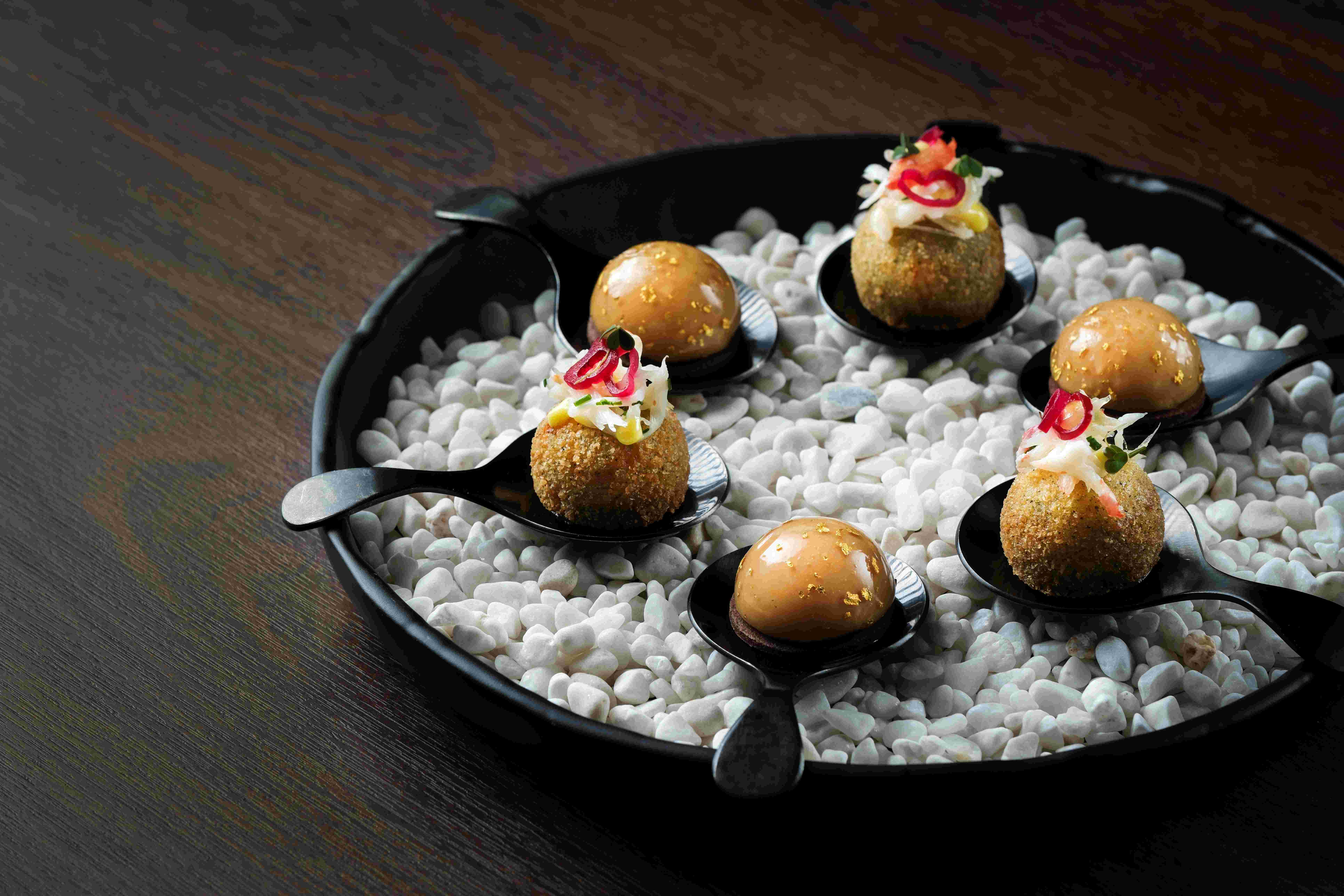 「炸亞拉斯加蟹餅」及「鵝肝慕斯」