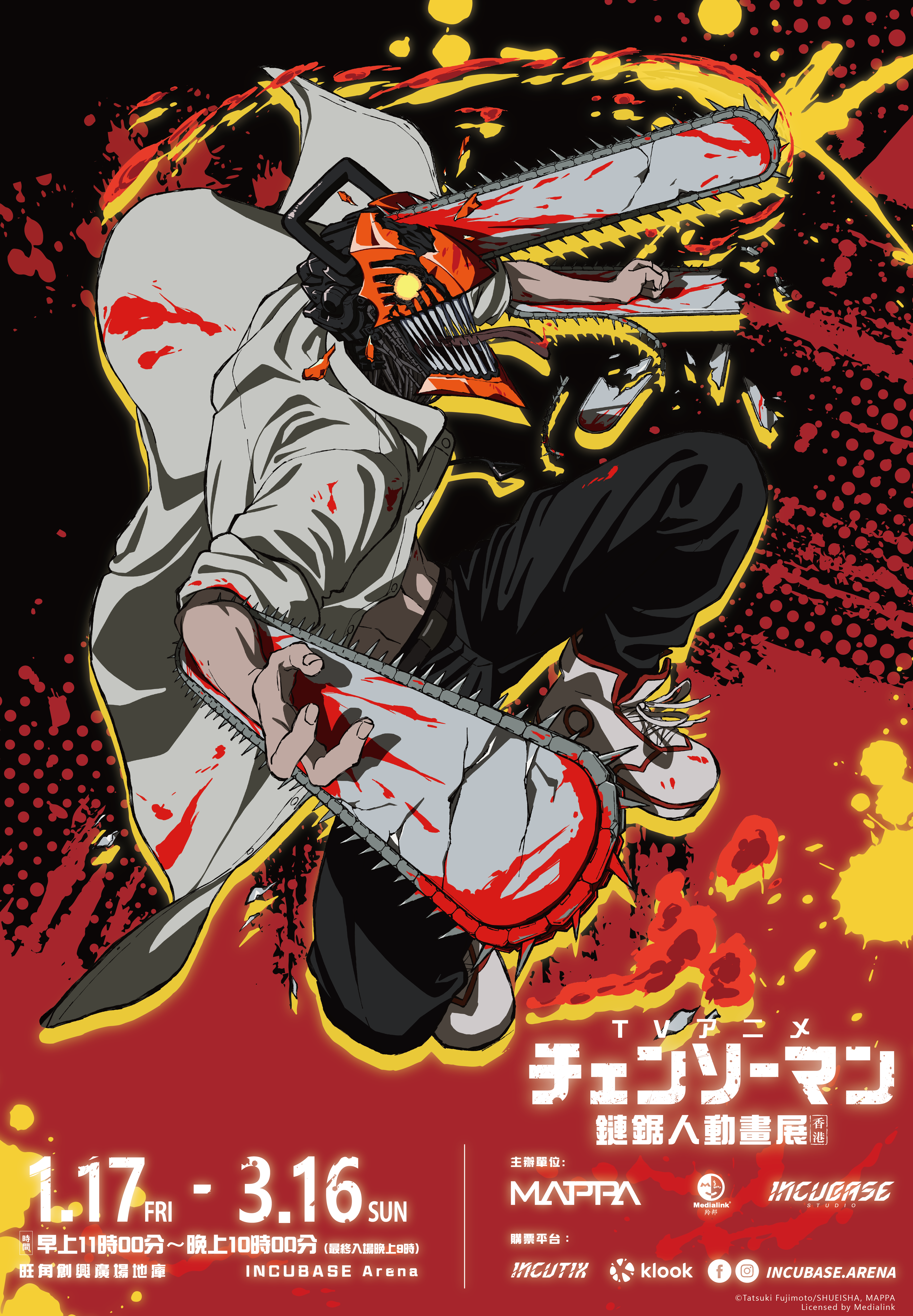 《鏈鋸人》動畫系列由動畫製作公司 MAPPA 製作,改編自漫畫家藤本樹的同名漫畫作品,於2022年全球首播時,即獲廣泛迴響!是次「鏈鋸人動畫展 - 香港」是該展覽首次於海外展出,而展覽地點亦是重開業的INCUBASE Arena新址!INCUBASE Arena遷址至旺角創興廣場,與「鏈鋸人動畫展 - 香港」同步開幕。