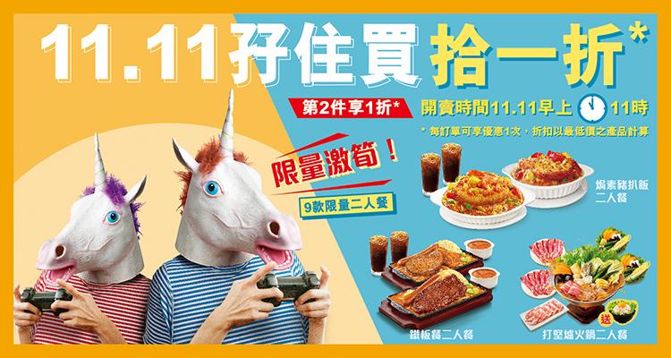 大家樂將於雙11帶來「孖住買 拾一折」優惠,網店eatCDC.com 將於2022年11月11日上午11時正起,推出9款限量二人餐券,買第二件即享1折優惠,餐券涵蓋早餐、午餐、下午茶及晚餐時段,每張訂單最高節省超過$120。