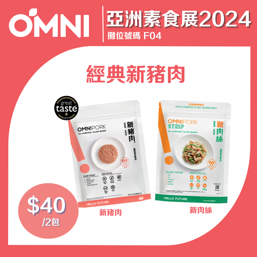 第十屆亞洲素食展將於 2024年3月8日假香港會議展覽中心 3FG開幕,踏入展覽十周年,食物科技品牌OMNI首次於亞洲素食展參展,為大家帶來一系列自家製造、榮獲多個國際食品獎項的植物性健康食品。而全新產品「OMNI新雞肉」亦推在會場內首次推出,新雞肉用途廣泛,無需解凍可立即煎煮,健康又美味,在會場率先以超抵優惠試食價$40(500 克)發售!另外更有會場獨家限定福袋,$100包含7件植物肉產品,包括新豬肉、新肉絲、新炸魚柳、新蟹餅等,買福袋更可獲贈實用保溫袋!