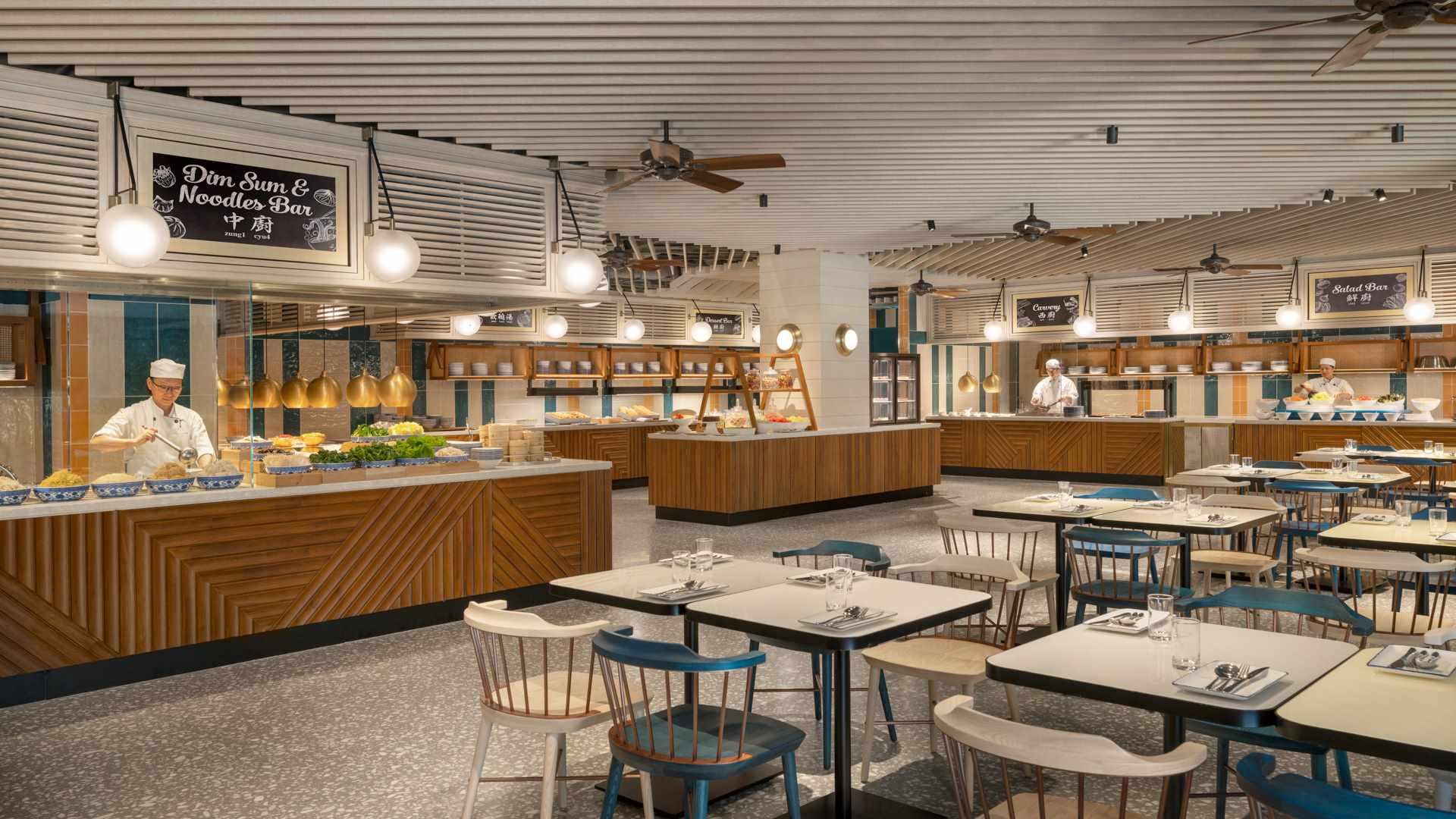 星耀廳將於復活節呈獻豐盛的環球美饌自助餐,為您帶來極致海洋滋味。餐廳從世界各地嚴選一系列時令海鮮,包括鮮嫩多汁的松葉蟹腳、麵包蟹和油甘魚等。品味一系列廚師精選包括新加坡三巴燒烤魔鬼魚和避風塘蝦碌,以鮮味滿載的奢華海鮮盛宴俘虜您的味蕾。暢享美味的前菜後,重點推介包括慢煮美國頂級安格斯肉眼扒、羊腿等,讓鮮味於舌尖上盡情綻放。酒店糕餅廚師團對更為您準備了琳瑯滿目的甜品亮點包括酒店馳名的班蘭蛋糕及朱古力噴泉。復活節主題甜品重點推介十字包、薰⾐草開⼼果蛋糕、朱古力復活蛋、⽢筍蛋糕、朱古⼒噴泉和芒果椰⾹泡芙等。