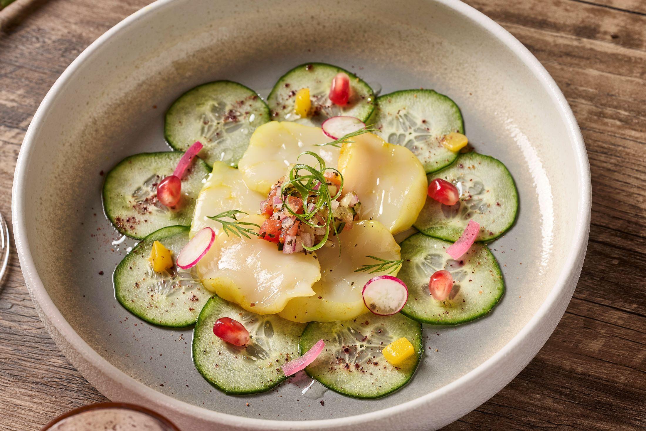 LPM Restaurant & Bar為情侶和賓客們呈獻專屬菜單,提供法式地中海美食和獨家甜品橙花水撻配粉紅果仁糖脆皮 (Tarte Tropézienne à la Fleur d’Oranger)。LPM Restaurant & Bar以現代手法,重新演繹法國蔚藍海岸一帶其中一款最深受歡迎的甜品Tarte Tropézienne。