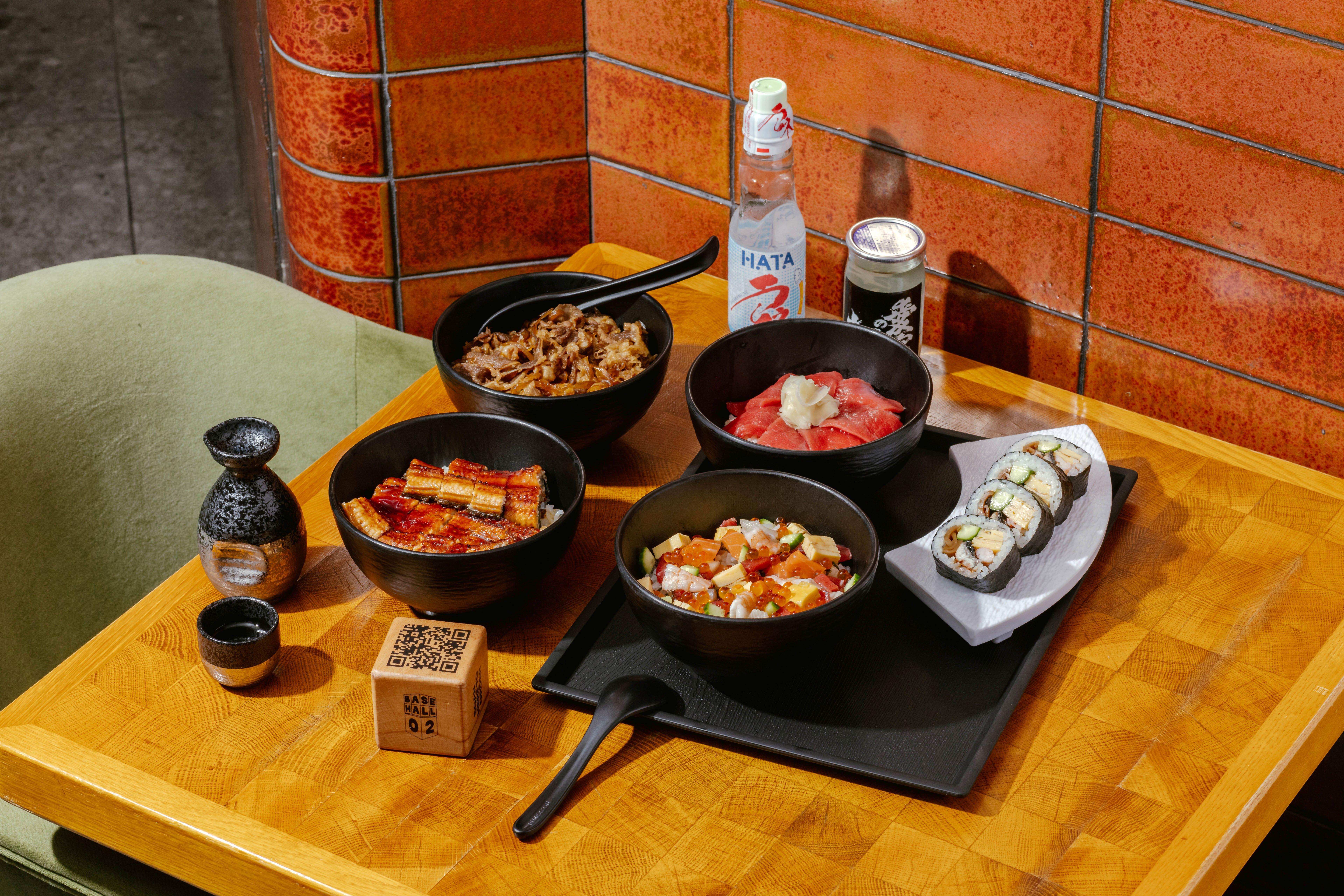 Don Bowls & Rolls by SUSHI FUJIMOTO 位於 BaseHall 02內,由 「鮨藤本」(Sushi Fujimoto) 的主廚兼創辦人藤本健一 (Kenichi Fujimoto) 主理提供一系列滋味丼飯、手捲和佐酒小吃,展示每日從日本空運到港的優質海鮮。可供外帶或堂食的菜餚及套餐包括精選丼飯、香蔥吞拿魚腩蓉丼(HK$170)、燒鰻魚丼 (HK$160)、壽喜燒和牛丼 (HK$190) 及照燒雞肉丼 (HK$88) 等等、美味手捲如三文魚子手捲 (HK$60) 及海膽手捲 (HK$98) 等,以及佐酒小吃包括枝豆 (HK$30)、日式炸雞 (HK$30) 、章魚燒 (HK$30) 等酒吧小吃,適合搭配日本清酒及啤酒等飲品。
