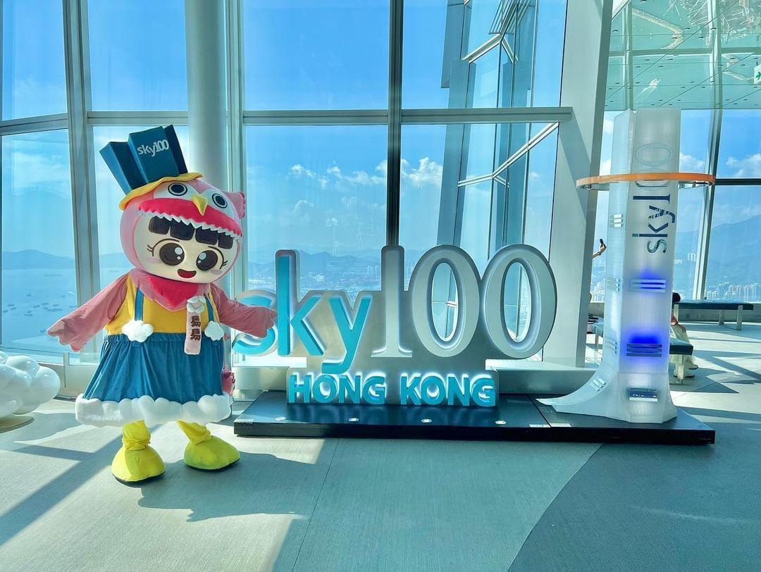 易易 MoMo 更會舉辦「聖誕共聚時刻」,以全新造型亮相並聯同小朋友合唱團一起唱聖誕歌,其打扮配合天際 100 觀景台特色,頭戴環球貿易廣場造型帽子,身穿天藍色裙子並以雲朵花邊點綴。見面會特設拍照環節,讓旅客與人氣易易 MoMo 合照留念,萬勿錯過!