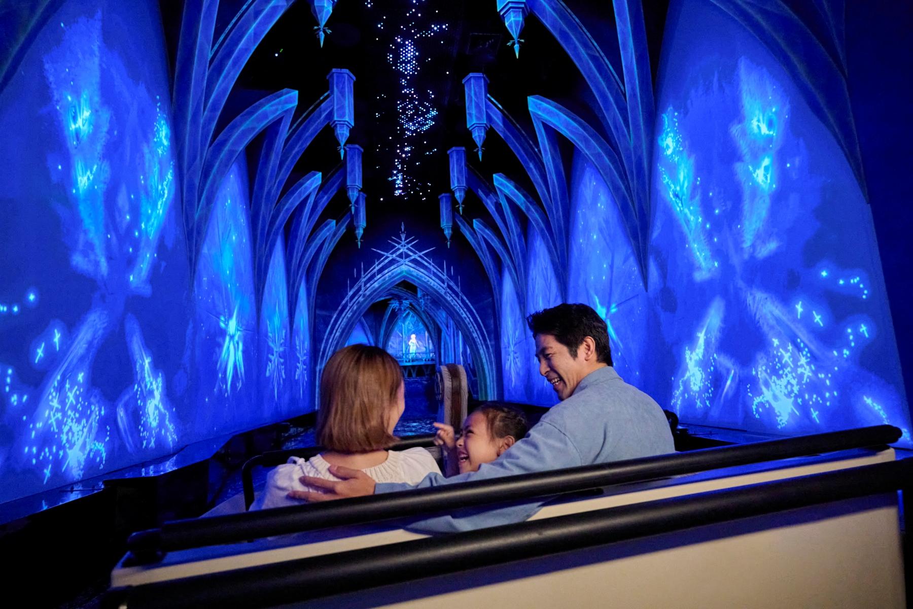 魔雪奇幻之旅是一趟注滿音樂、歡笑的愉快旅程。賓客乘坐木船穿越北山,參觀愛莎的冰雪皇宮,見證愛莎的冰雪魔法。當最愛的《魔雪奇緣》電影樂曲縈繞耳邊,一個超乎想像的世 界隨即展現眼前。在熟悉的《魔雪奇緣》好友 陪伴下,乘船穿越一幕幕壯麗場景,場面溫暖 人心之餘,亦逗人歡笑,有炫目迷人一面,也 有令人讚嘆一面,身歷《魔雪奇緣》的故事奇境。旅程中將會有驚喜,如經歷後退及循著瀑布短程俯衝,而你亦可能會被淋濕。