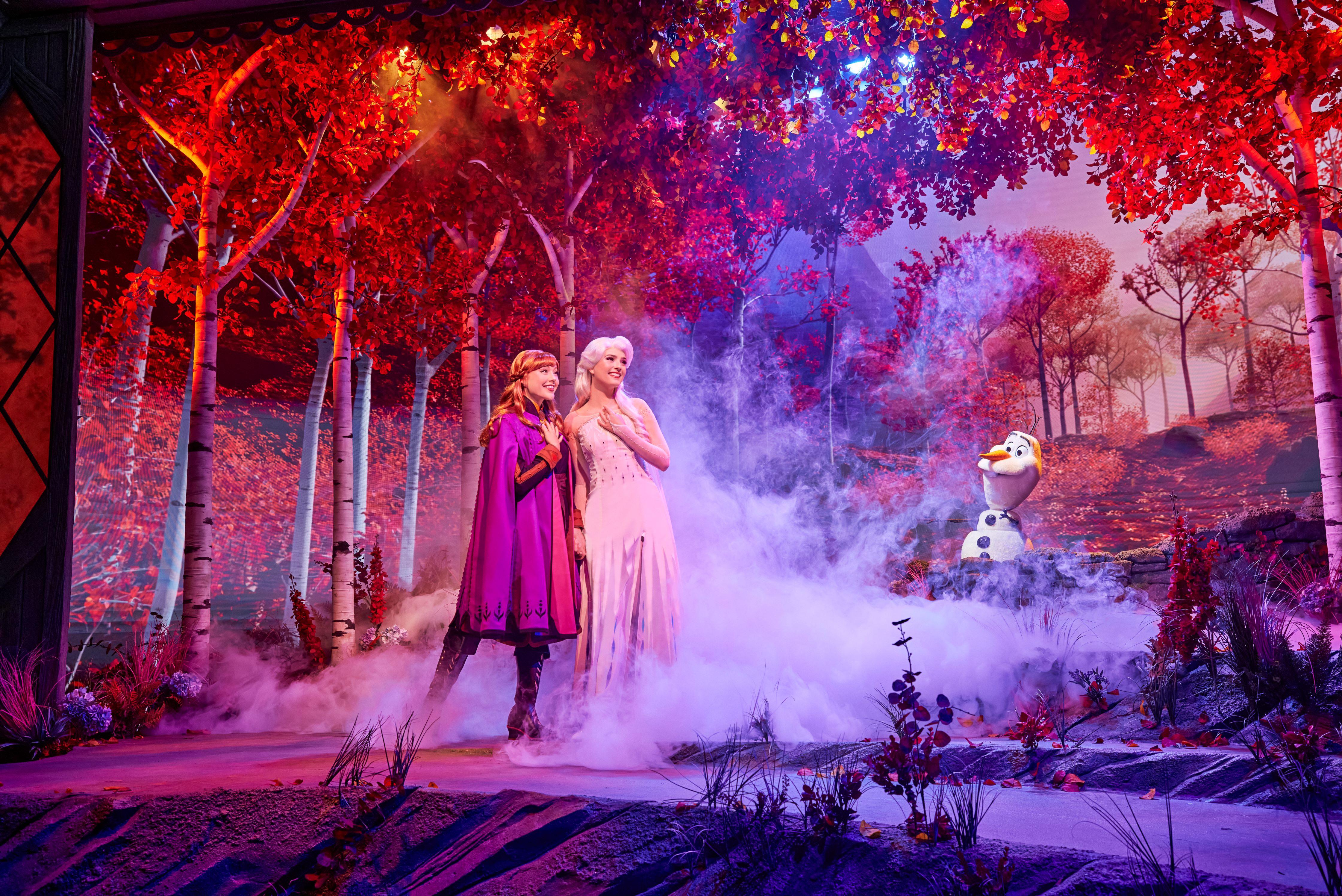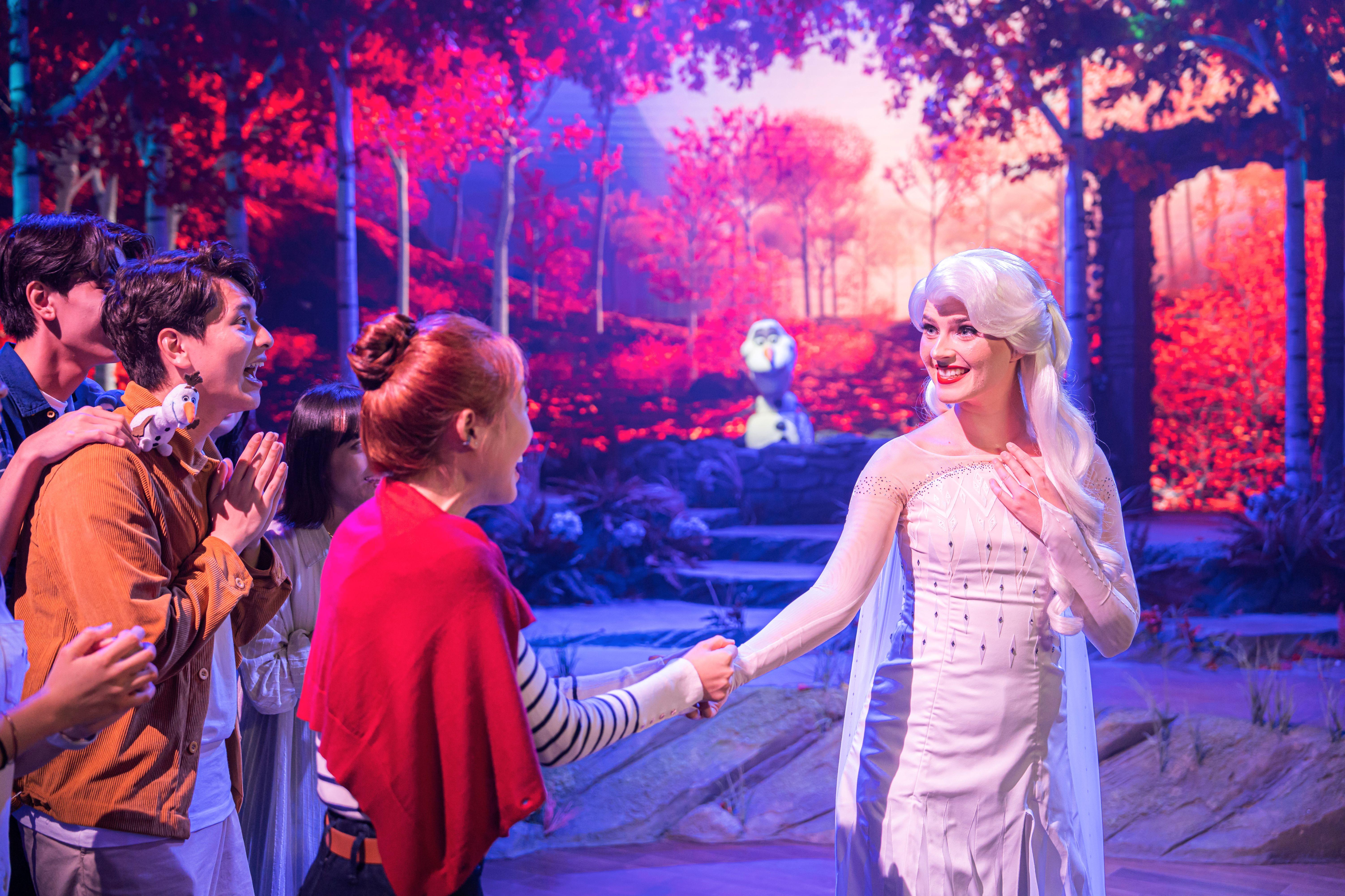 森林小天地,賓客可以與安娜、愛莎及小白投入嶄新、近距離互動的戲劇體驗之中,並可見證愛莎施展嘆為觀止的冰雪魔法。這個互動表演揉合出色的光雕投影、特效和感官元素,是賓客不 可錯過的精彩娛樂互動體驗。