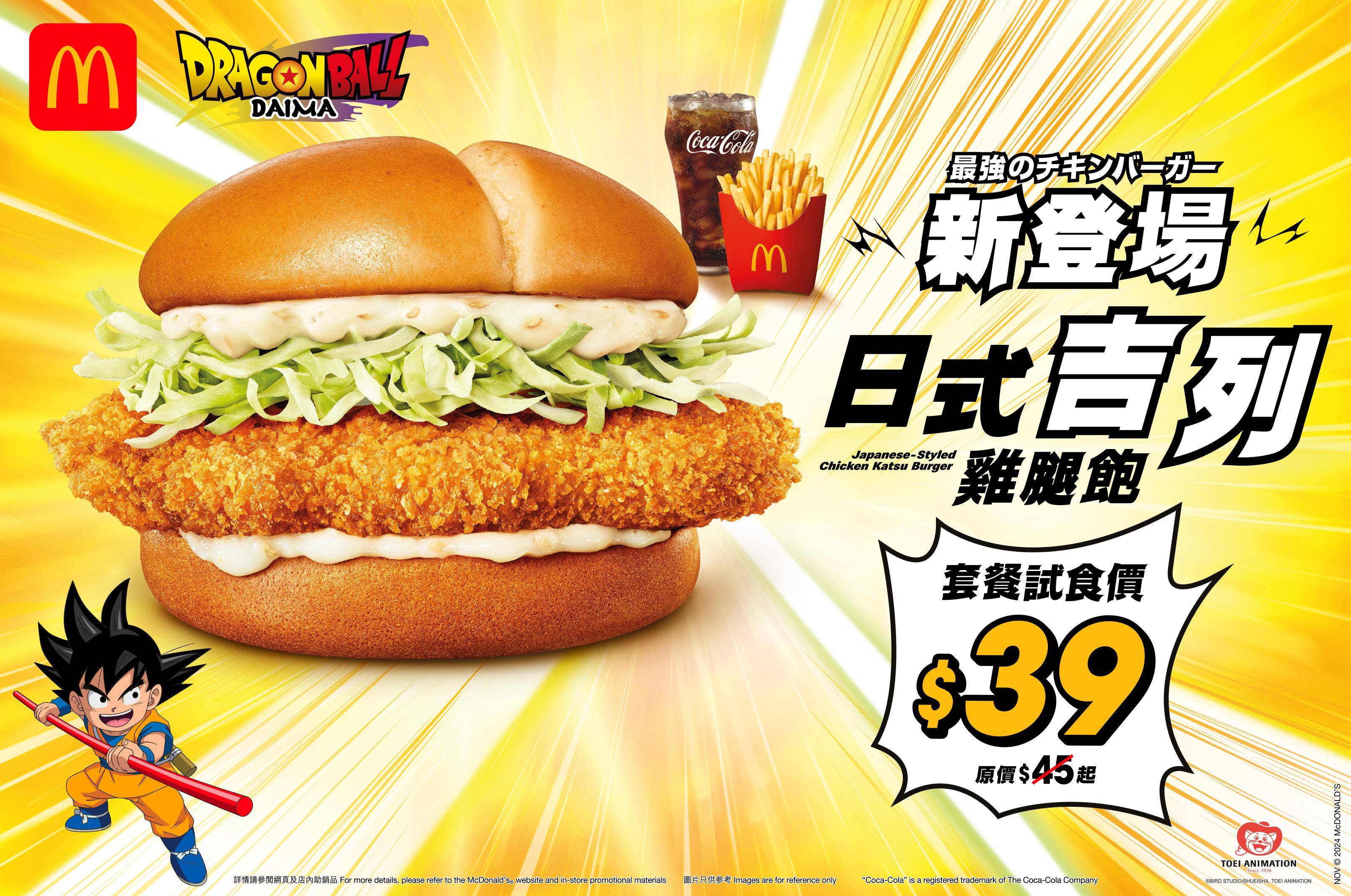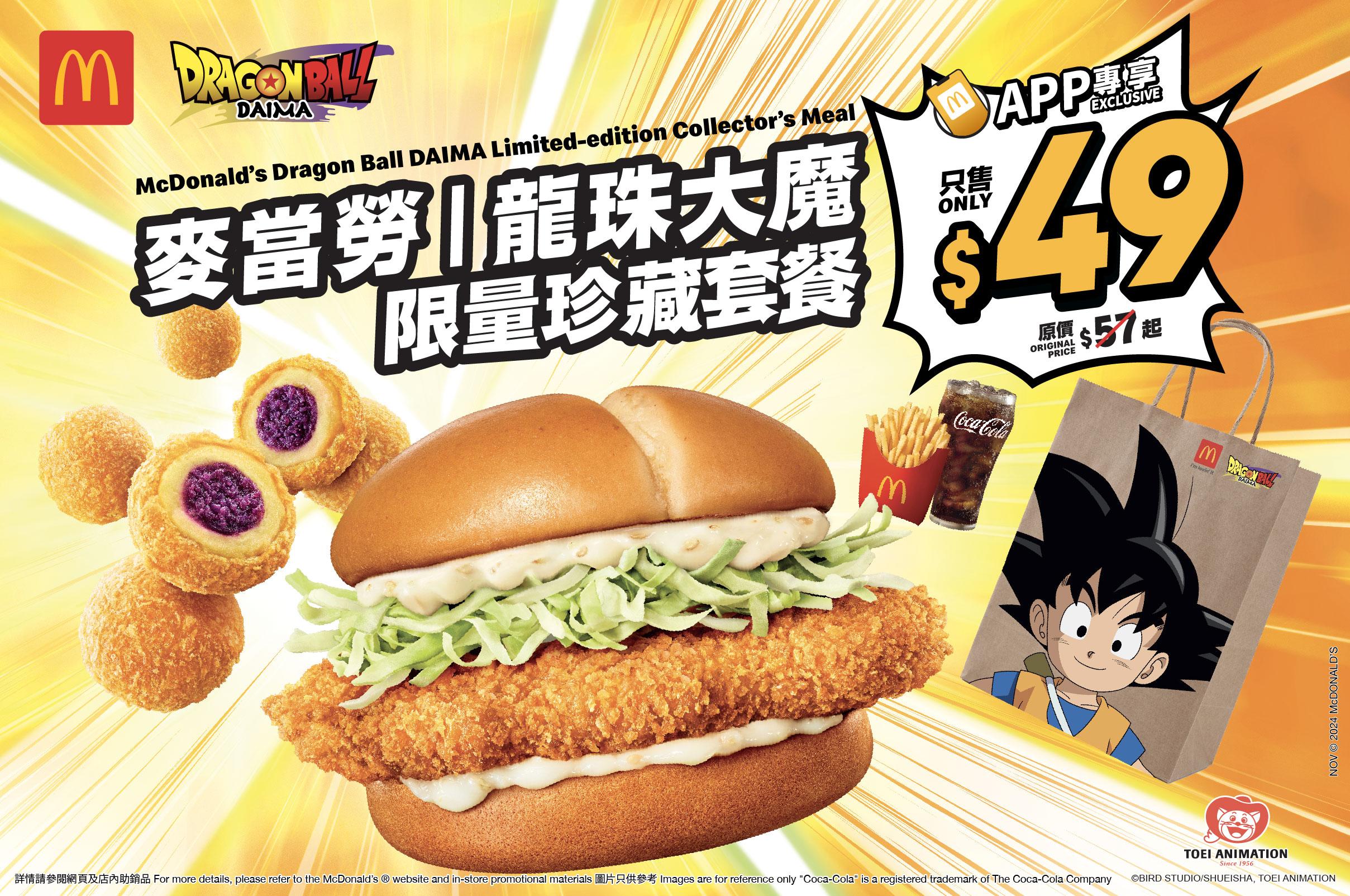 香港麥當勞宣布與經典人氣動漫《龍珠》全新系列《龍珠大魔》攜手合作,由11月14日起推出全球獨家的期間限定聯乘系列,美食包括日式吉列雞腿飽、紫薯脆波以及大阪燒風味Shake Shake薯條調味粉等,全部用上動畫主題包裝盛載,粉絲必食!另外麥當勞App用戶專享「龍珠大魔限量珍藏套餐」,購買套餐即送聯乘珍藏紙袋,印有悟空(縮小版)以及界王神(縮小版)兩位經典角色肖像,收藏價值高!