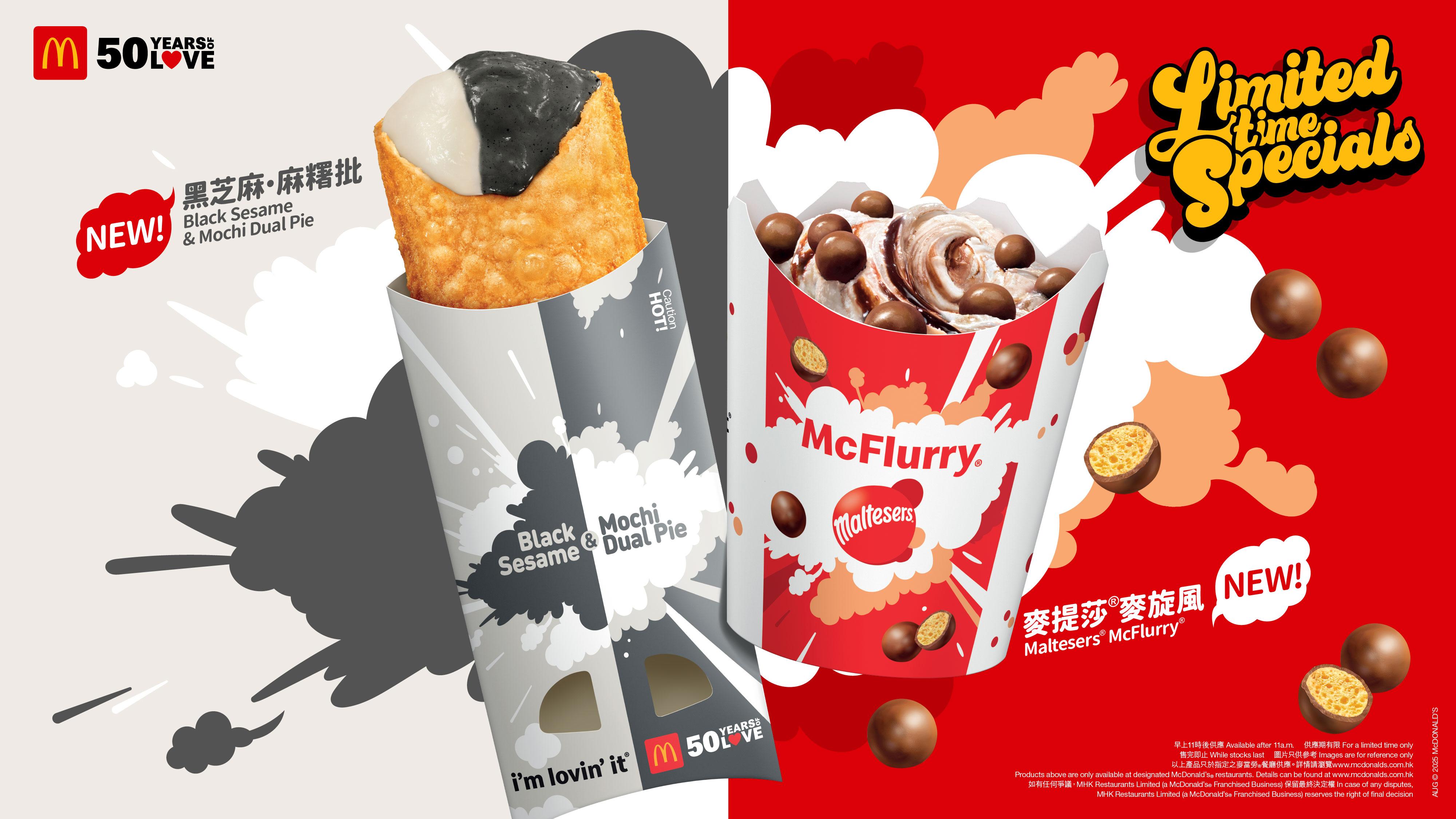 一系列全新美食同日起登場,Shake Shake薯條推出全新口味辣青檸風味調味粉,香辣同時帶來清新青檸香氣,一試難忘!全新黑芝麻.麻糬批注入滿滿香濃黑芝麻醬吉士餡料,搭配煙韌麻糬,口感豐富,令人回味無窮!全新麥提莎麥旋風由雲呢拿新地、麥提莎朱古力和朱古力醬製成,香濃順滑,帶來全新「脆」味。熱情果梳打亦於夏日回歸,熱情果味梳打加上雜果,消暑降溫。