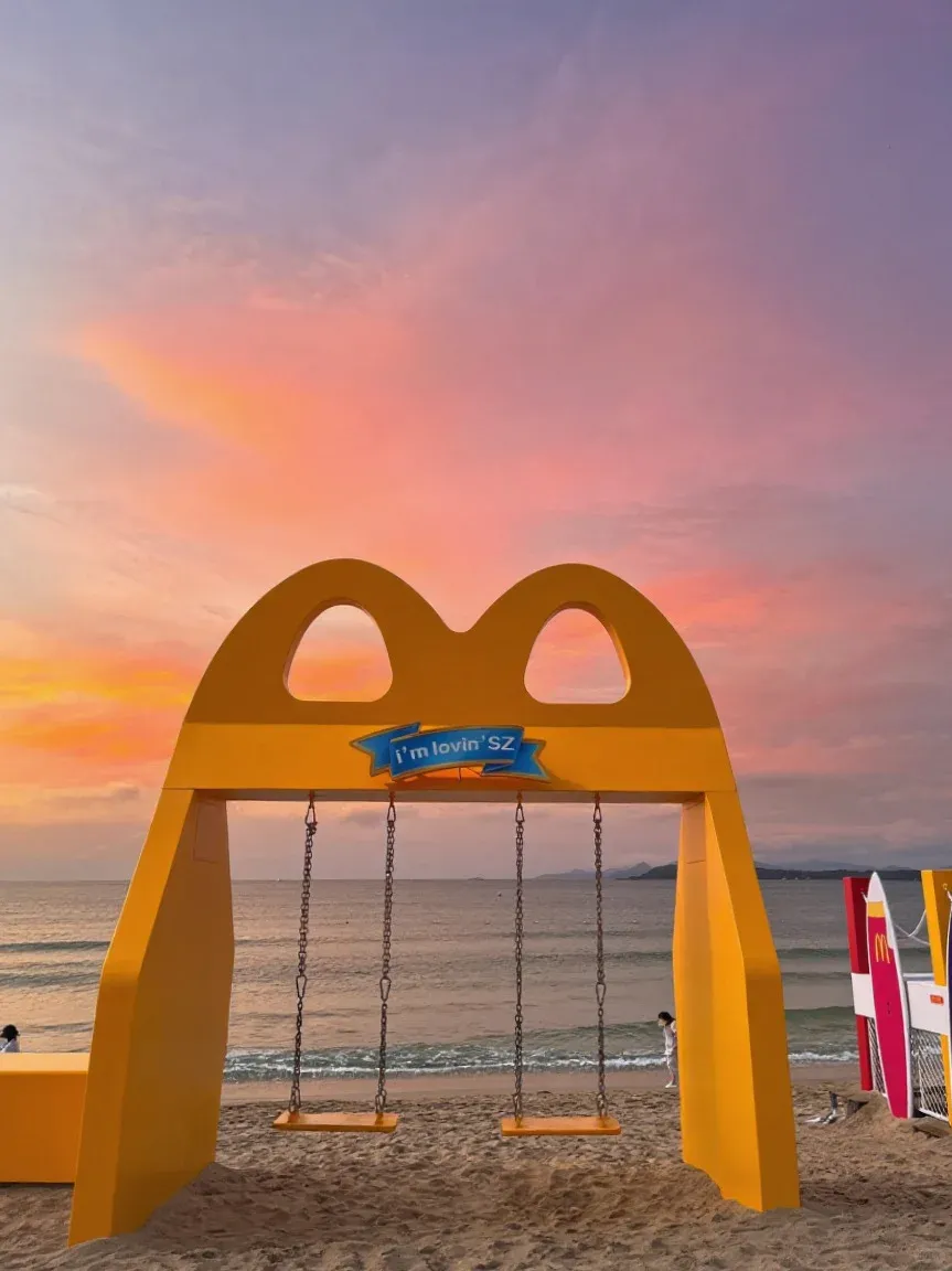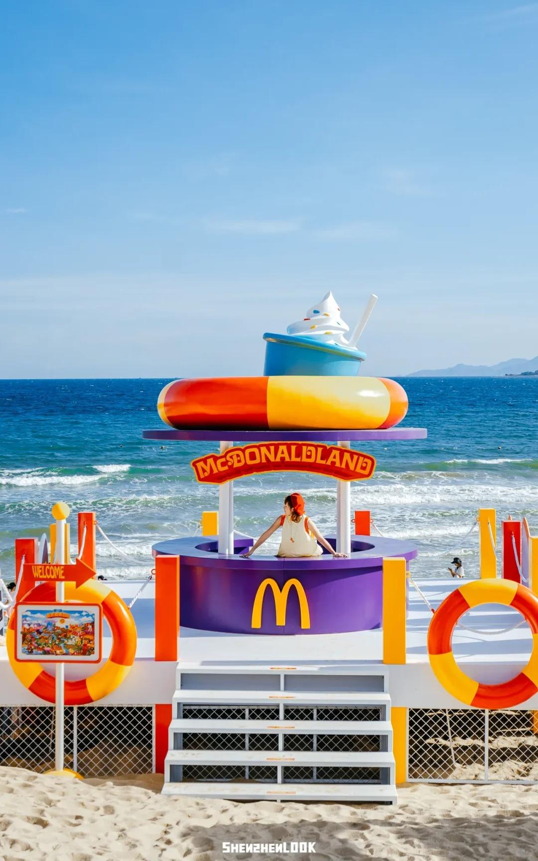 大梅沙海濱公園化身成麥麥沙灘!海灘上擺滿各種麥麥裝置,有巨型薯條長椅和開心樂園餐打卡區,將美食巨大化!可到這裡附近的麥當勞,出示護照即可蓋章。