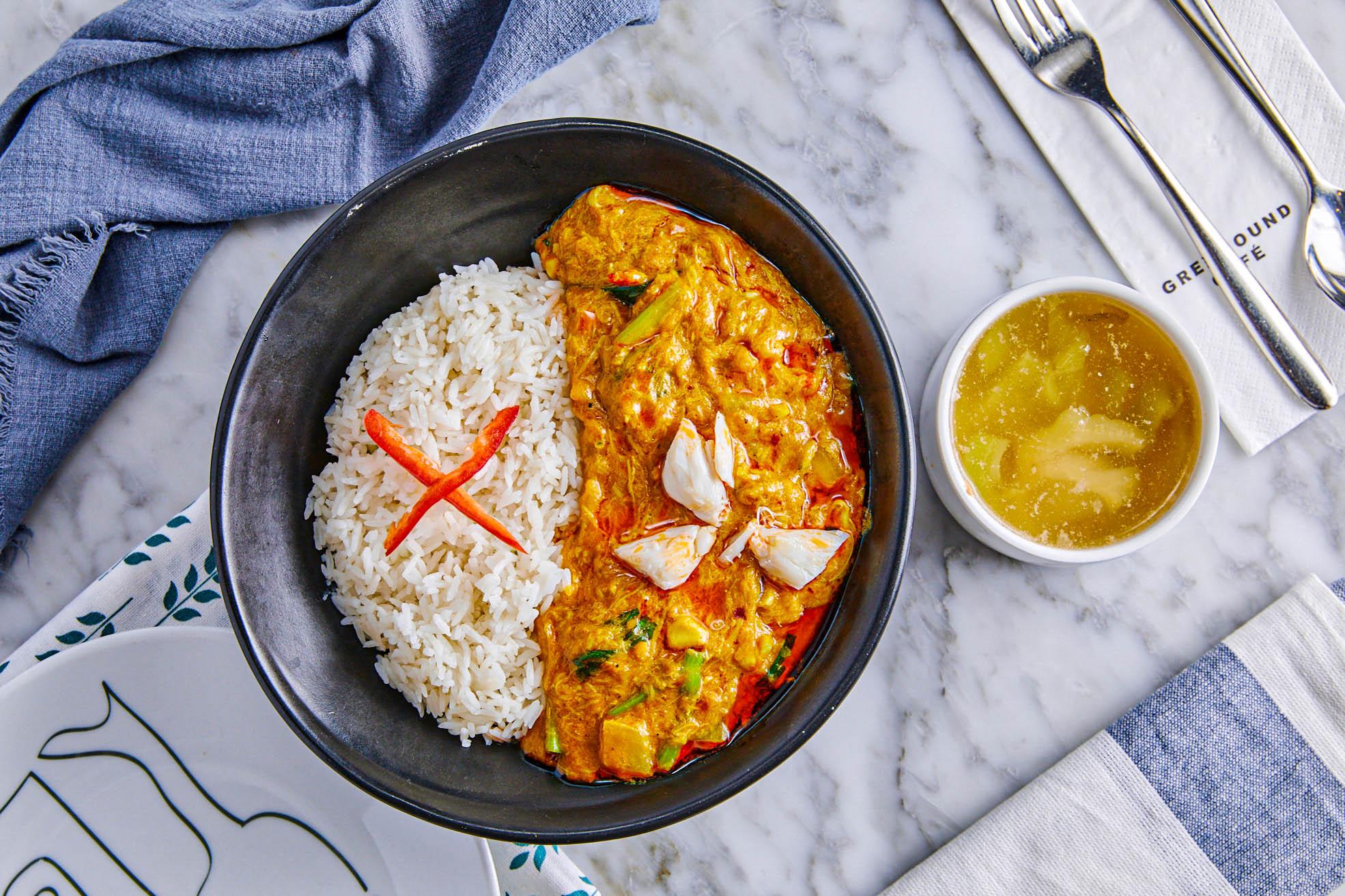 泰菜當然少不了咖哩,餐廳的珍寶蟹肉炒黃咖哩-$148,配上洋蔥、紅椒和雞蛋,鋪在泰國香米上,混和啖啖蟹肉一起進食,一試難忘!
