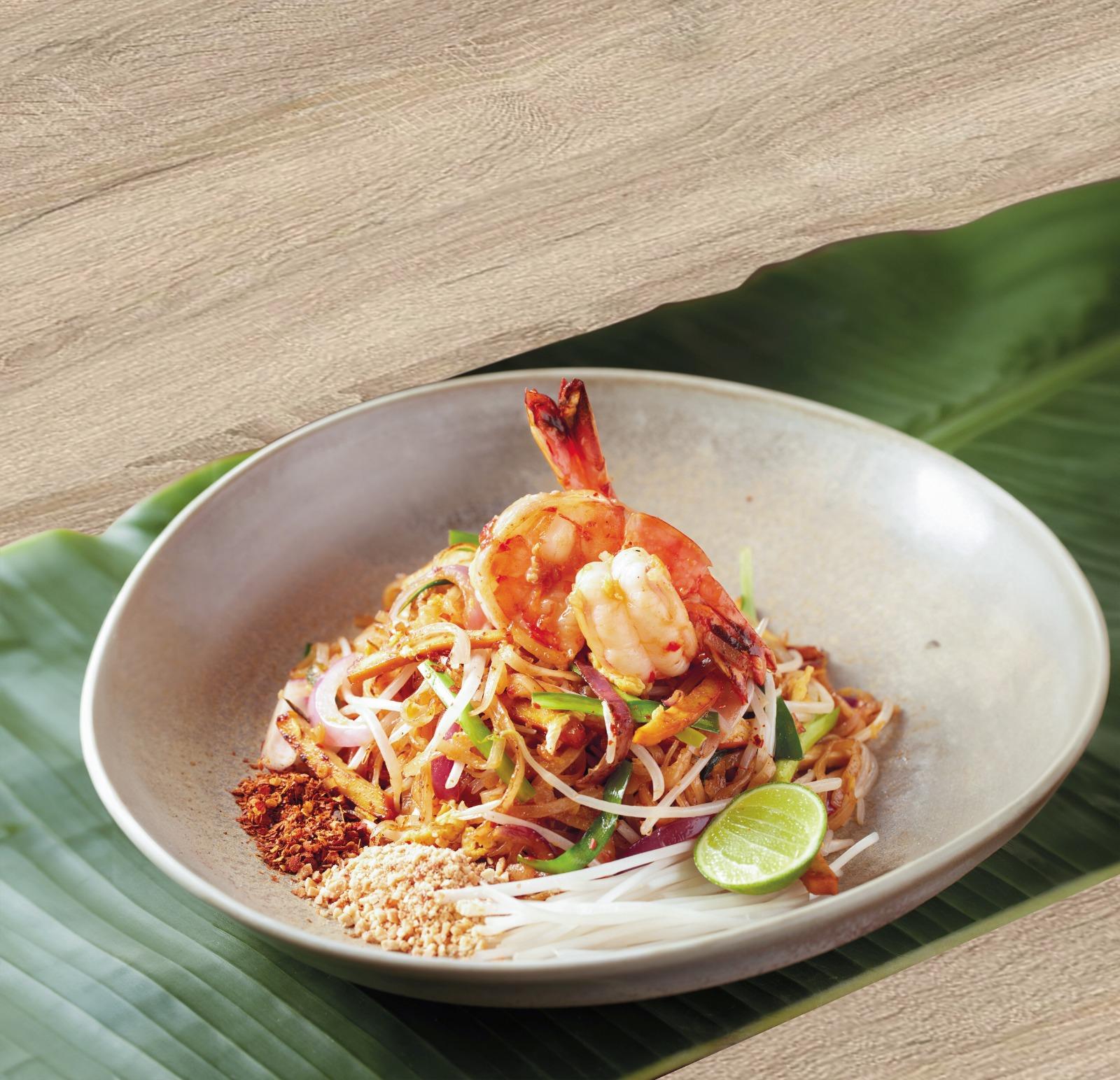 肉食主菜推介有「泰式香芒炒牛柳粒」($178),匯聚清甜且新鮮的芒果及肉嫩多汁的牛柳。鑊氣十足的飯麵選項則有散發健怡氣息的「青咖哩炒虎蝦有機糙米飯」($158);洋溢臘味香的「招牌蟹肉臘腸炒飯」($148);及泰國地道街頭美食「泰式海虎蝦炒金邊粉」($138)等。店內同時設有以植物肉入饌的泰菜素食變奏,如「泰式甲拋辣Impossible植物肉碎」($98)及「泰式火車頭Impossible植物肉碎炒飯」($118),照顧素食者的美食需要。