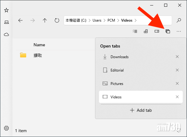 拖曳動作有點特別,在同一視窗的分頁之間拖曳檔案是「移動」;但在兩個視窗之間拖曳檔案就是「複製」。