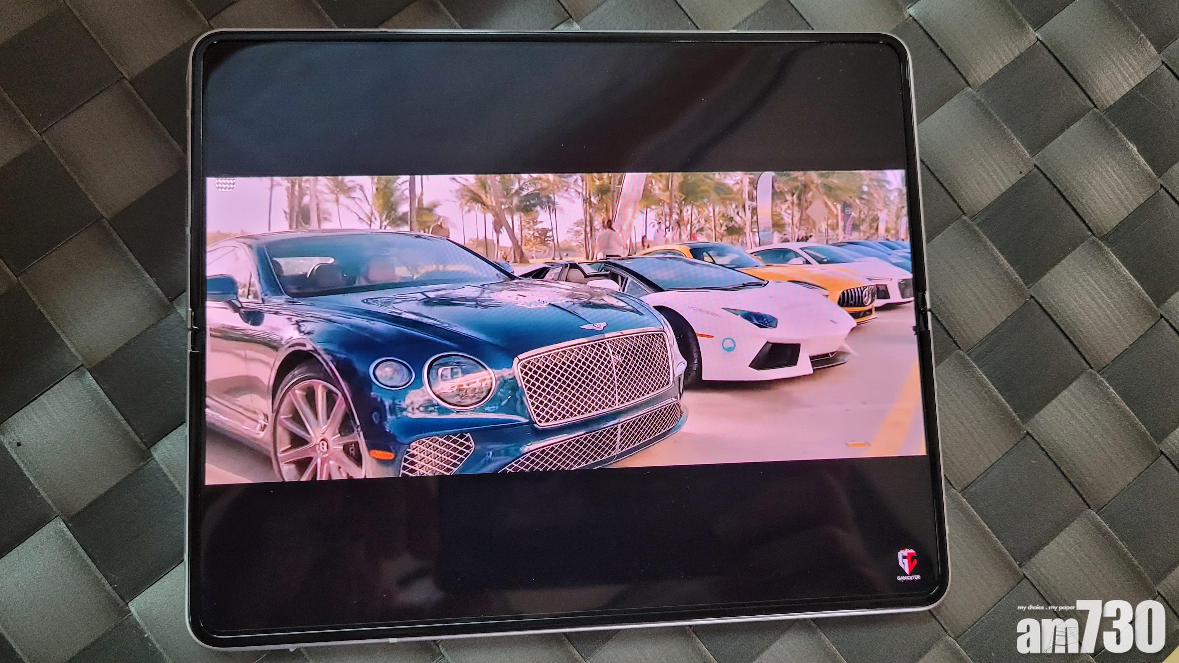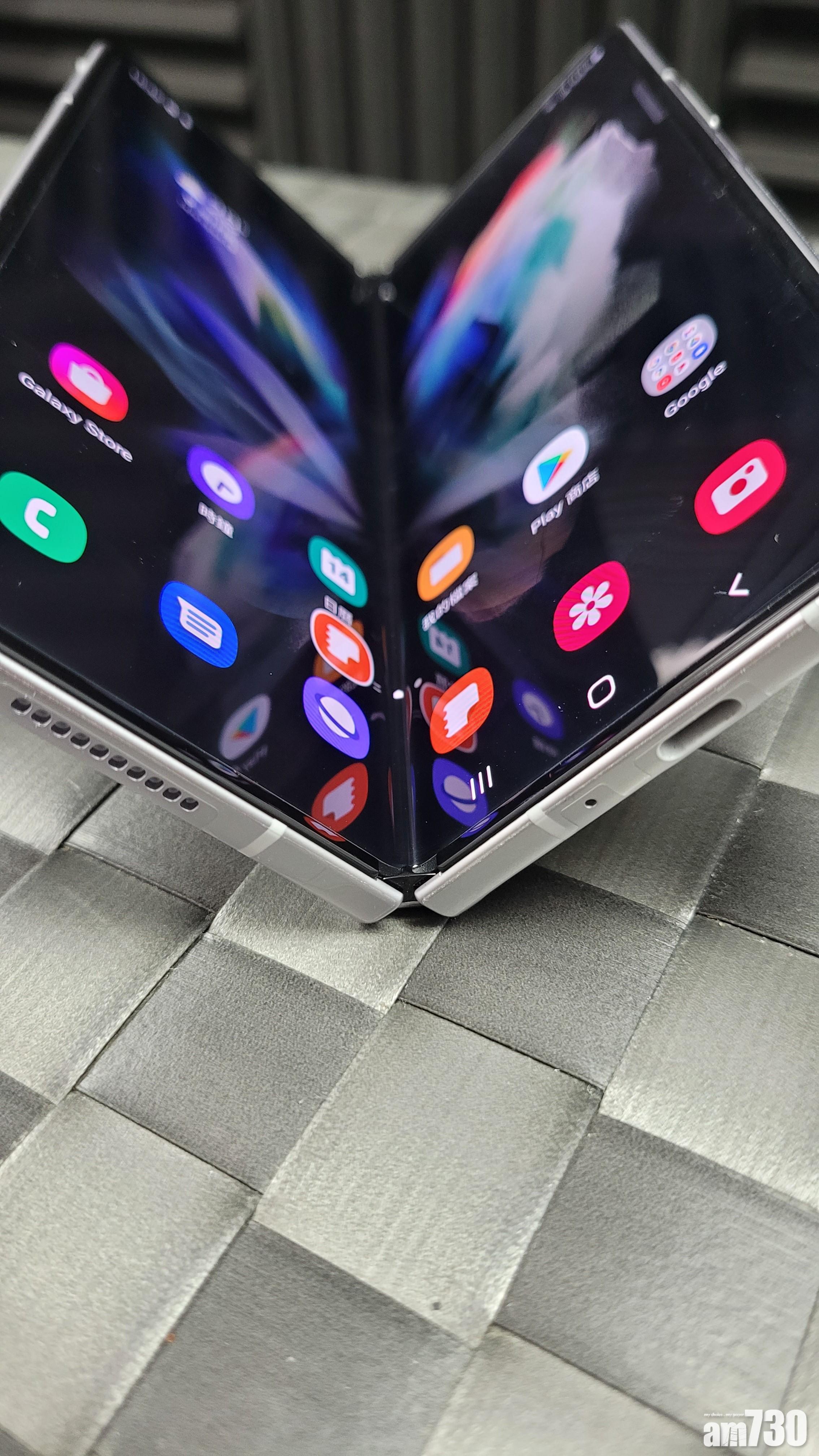 摺疊屏幕難免會有「摺痕」,有用家會好介意。坦白講,摺痕觀感明不明顯,好視乎使用環境場合,包括光源、顯示畫面色彩與觀看內容。例如在室內有光管照射的房間使用,摺位的凹陷位置好容易因為光線折射而透現摺痕;另外顯示純黑色或單一色彩畫面,也容易見到摺痕;靜態圖片亦比動態影片易留意到摺痕,不過對比上一代,摺痕的「深度」已大幅減低,絕對可以接受。小編試過展開兩部手機主屏幕瀏覽《am730》網站,尤其在Fold3時,網頁內容佔盡屏幕空間,相當好睇;至於橫置手機用YouTube睇16:9電影比例影片,如果不是專登留意,也不覺得有痕跡。惟睇4:3比例影片時,由於兩邊黑位較多,視線容易轉移至摺痕。