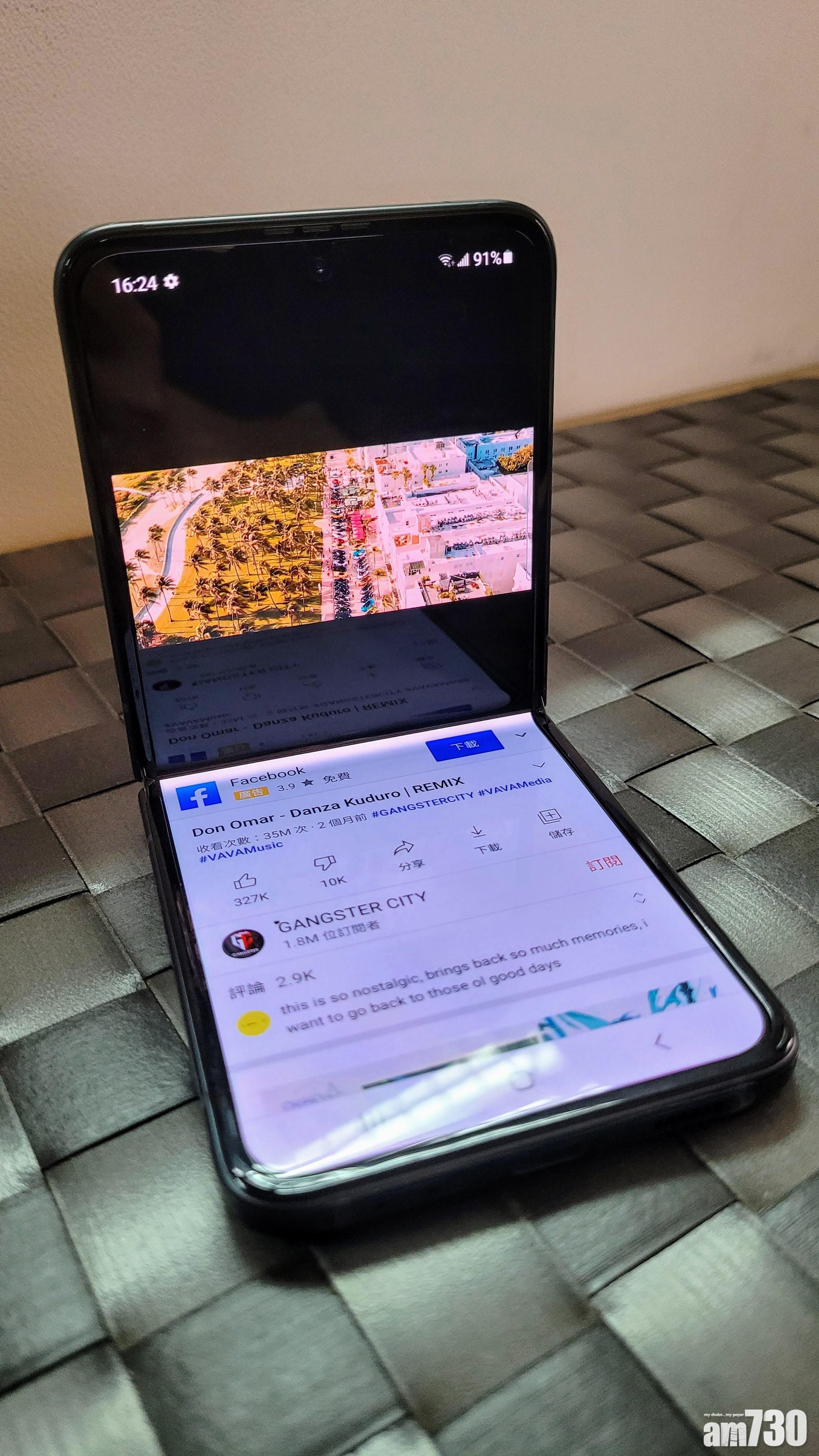 Flip3一樣有Flex Mode,但屏幕較小不及Fold3好用。(廖俊斌攝)