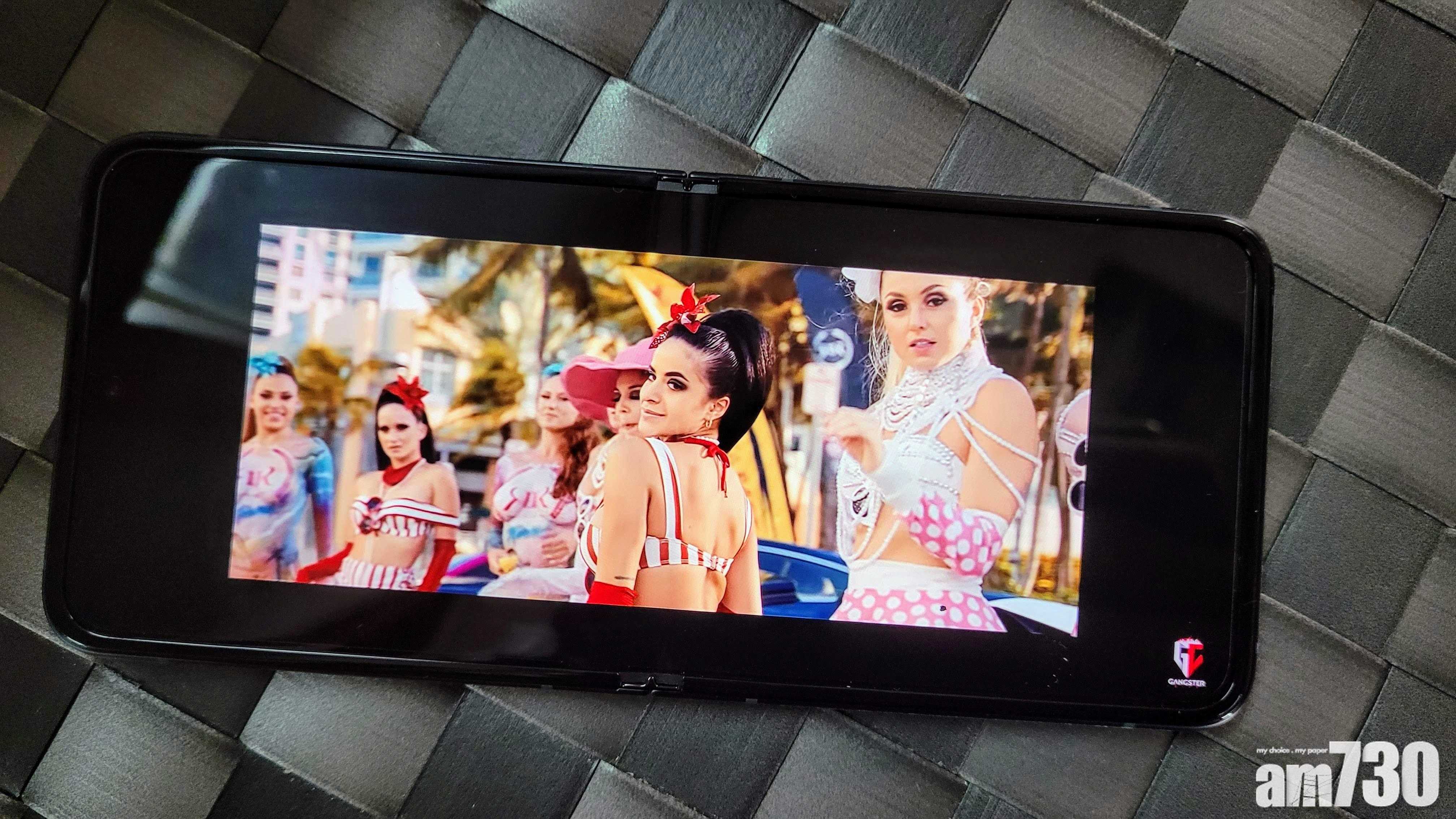 橫置Flip3睇片,中間摺痕一樣唔覺眼。(廖俊斌攝)