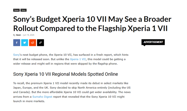 SONY Xperia 10 VII 傳將全球多地區上市!