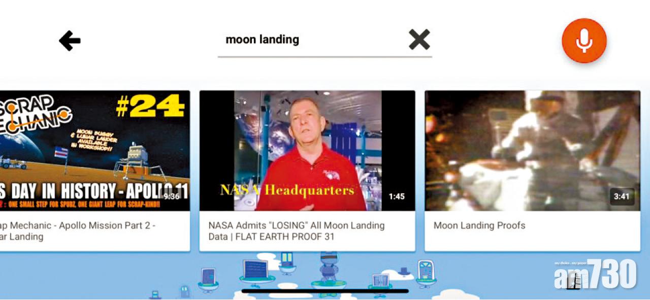 搜尋「登月」的話,會找到「登月造假」的陰謀論影片。