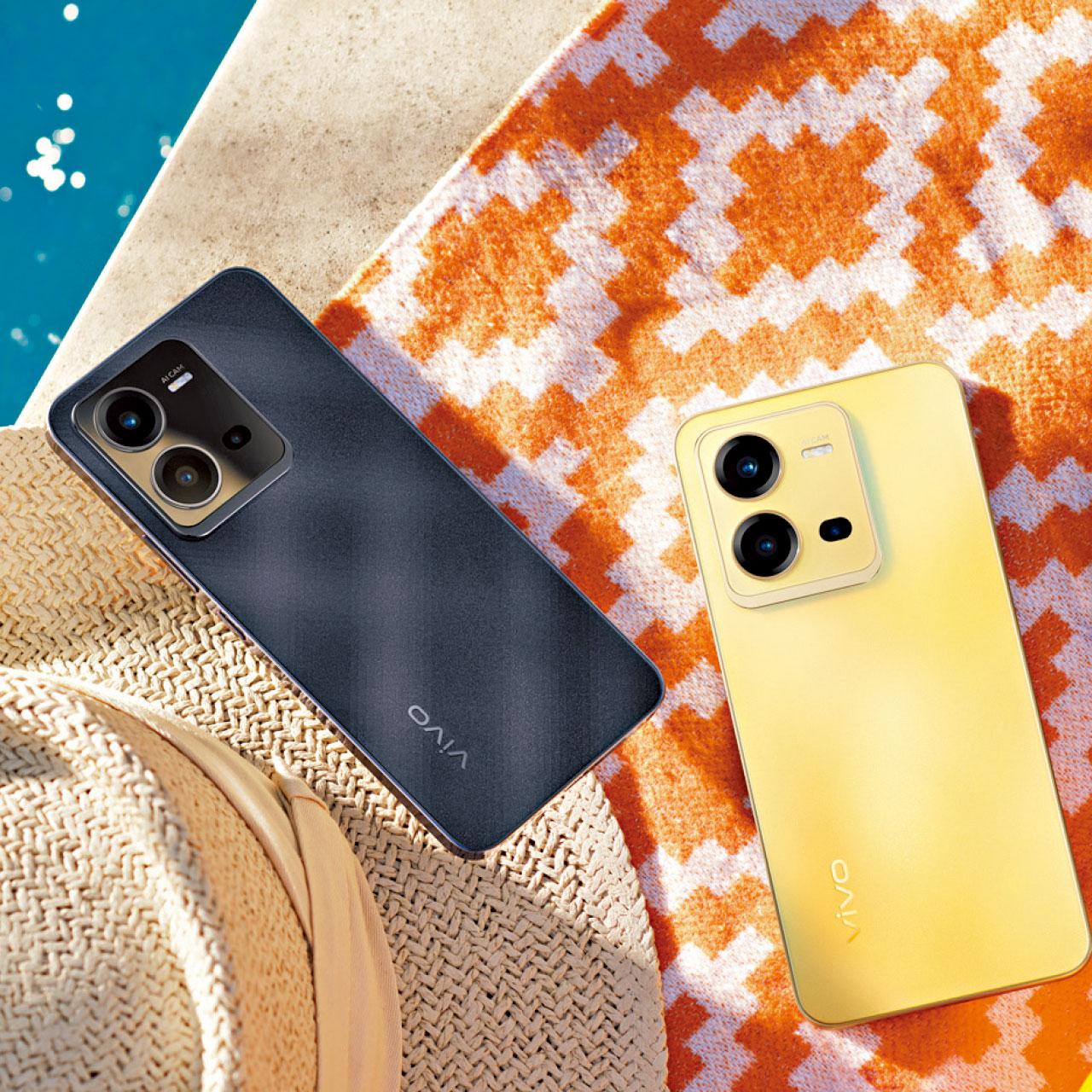 機身方面,vivo V25採用6.44吋90Hz更新率FHD+挖孔屏;Pro版則是略大6.56吋120Hz更新率FHD+屏。鮮豔配色設計前者擁有暮曉金和菱鑽黑兩種選擇;Pro版則有衝浪藍和石墨黑以供選擇。手機均有光致變色螢石AG玻璃背蓋,能因應紫外光照射產生變色效果,其中V25的暮曉金款由金色變橙紅;Pro版衝浪藍款可由淺天藍色變為深海藍。規格方面,V25選用聯發科天璣900、8GB+8GB(內存融合)連256GB儲存、4,500mAh支援44W閃充,可30分鐘充電61%。至於Pro版改用天璣1300、12GB+8GB(內存融合),而4,830mAh對應66W閃充,30分鐘可充71%。售價方面,vivo V25售3,398港元;V25 Pro則4,298港元,現已上市。