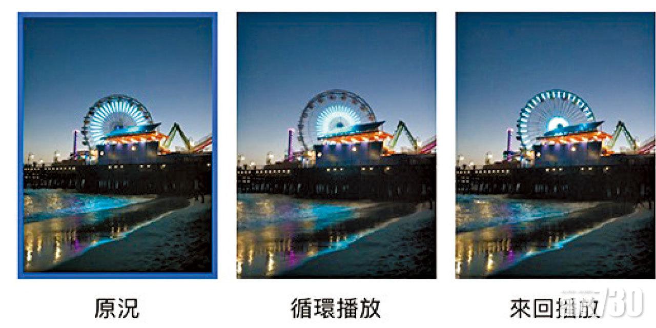先使用Live photo拍攝,再找回原相並向上滑動,改變效果。