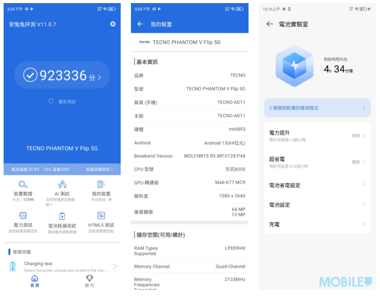 Phantom V Flip 5G機身重量為195g,展開時厚度為6.95mm,摺疊時則為14.95mm,攜帶感相對輕便。