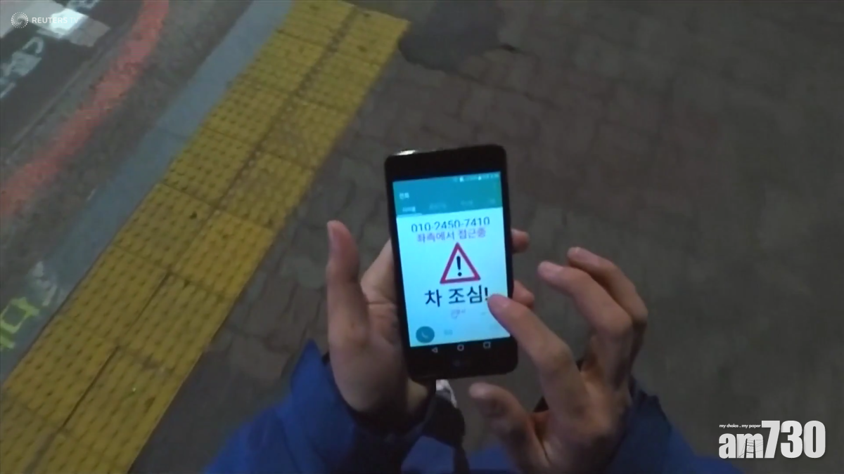 滑住手機過馬路,可能很多人也不覺得是甚麼一回事,但很多已開發國家出現過路時使用手機而造成嚴重意外的事故愈來愈多,南韓首爾更是重災區之一。為提醒路人過馬路要注意安全,南韓「韓國建設技術硏究院」在首爾近郊城市開始試行一套全新警示系統,除在地面加設LED燈警示駕駛與行人外,交通燈柱亦加裝投影機,在晚間於路面投射注意安全的告示,更會透過手機程式,彈出警告將馬路附近手機畫面的屏幕遮蓋起來,讓行人不得不專注道路情況。韓國建設技術硏究院有關警示系統造價約1,500萬韓圜(約99,000港元)。