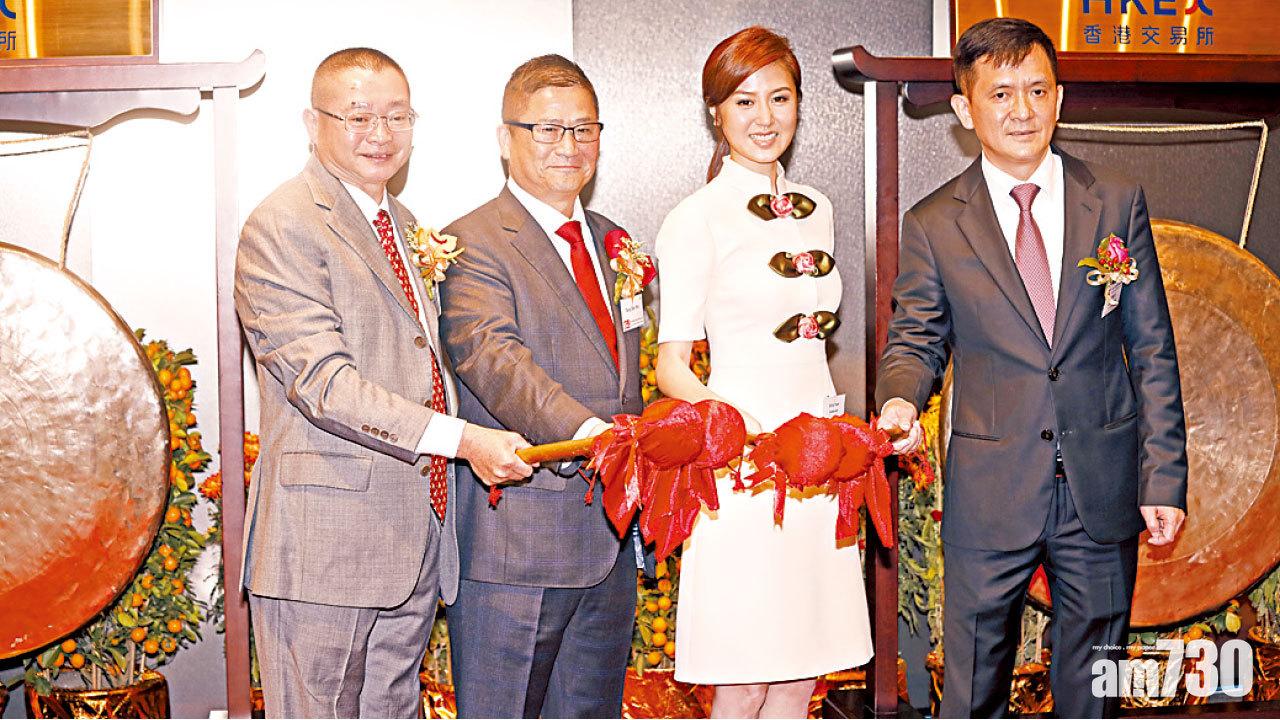 4新股昨掛牌,彌明生活逆市升3.7%,右二為主席兼行政總裁袁彌明。(林俊源攝)