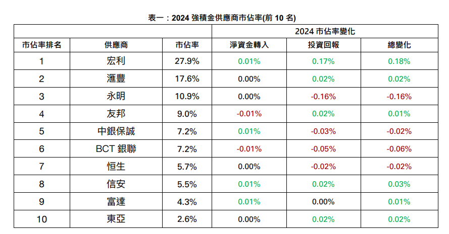 強積金機構GUM發布最新1月的強積金市場佔有率報告,顯示1月強積金市場總資產下跌1.7%,跌至1.12萬億港元;在市佔率方面,宏利仍以27.9%的佔有率居首,滙豐(17.6%)和永明(10.9%)繼續位列第二和第三。