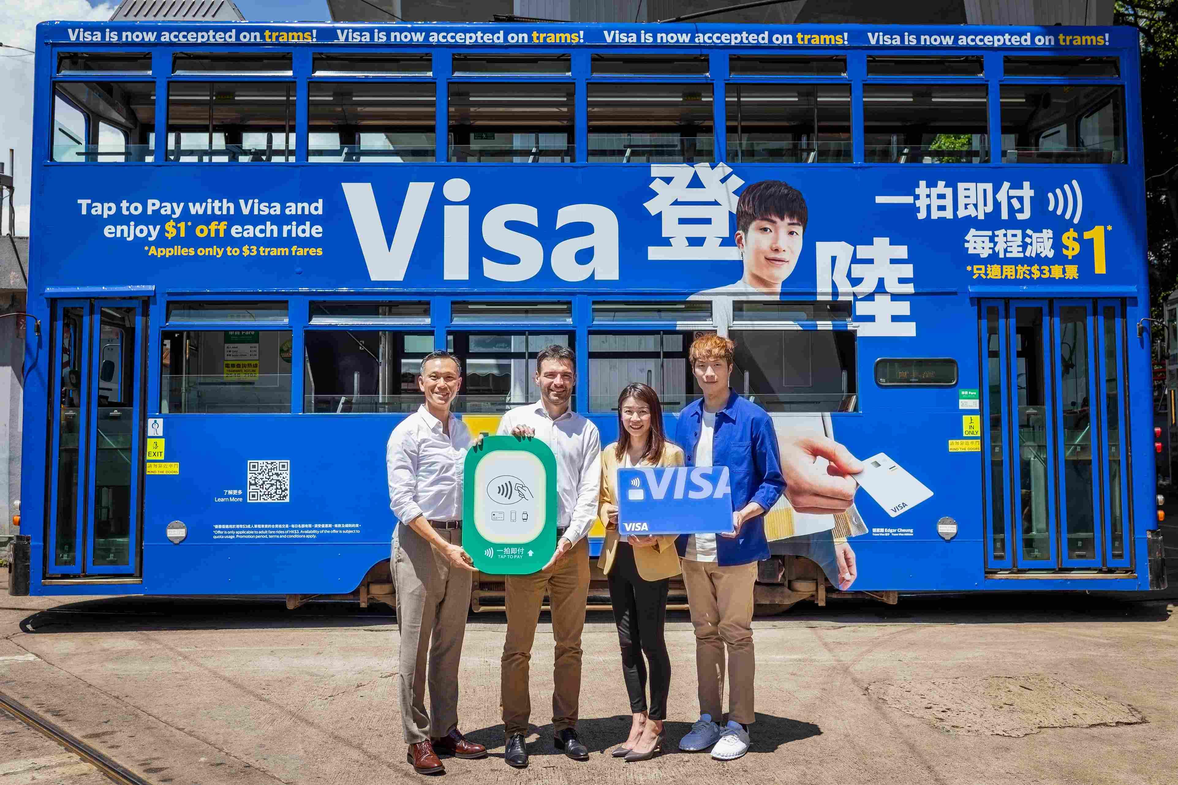 電子支付公司Visa宣布,與香港電車公司聯手宣布推出電車消費推廣優惠,由今年7月6日至12月31日期間,乘客使用 Visa 感應式信用卡、扣賬卡和預付卡,或通過電子錢包綁