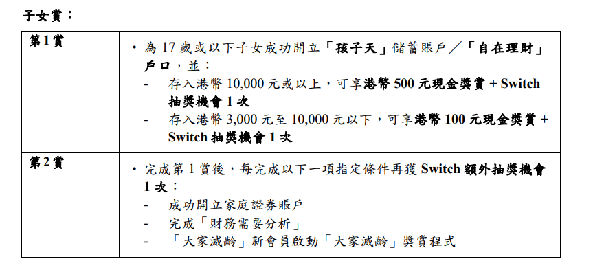 中銀香港指,由即日起,「中銀理財」客戶可享多項FamilyMAX獎賞獲高達港幣2,350元獎賞,更 可參加大抽獎,有機會贏取Nintendo Switch (OLED款式) (「Switch」)乙部,名額共10名。