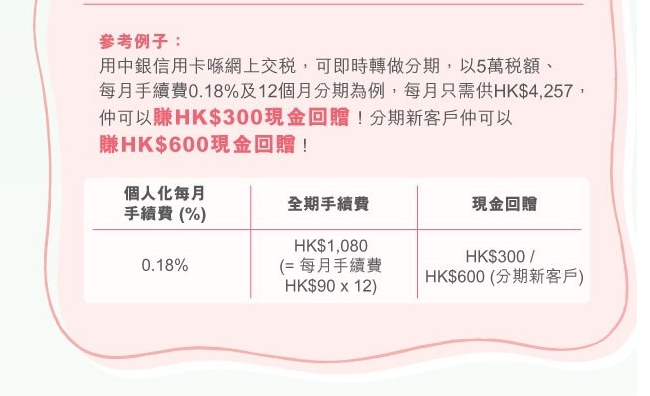 交稅優惠2024|中銀香港信用卡交稅優惠及方法: