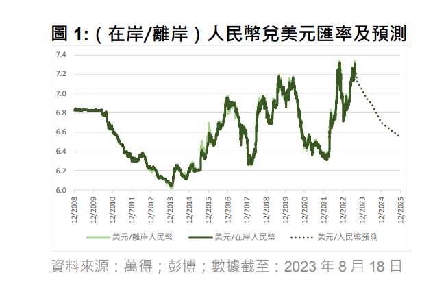 恒指公司表示,人民幣匯率中長期前景或能得到良好支撐。人民幣兌美元匯率反彈的上行風險因素包括美國加息周期結束,以及內地政府進一步推出刺激經濟的政策。彭博數據顯示,截至今年8月18日,市場料2023年/2024年,美元兌人民幣匯率為6.70/6.55,即預計人民幣兌美元匯率將反彈9%/11%。