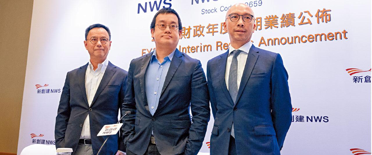新創建中期連特別息共派2.09元;圖右起為何智恒、鄭志明及首席財務總監林戰。(蘇文傑攝)