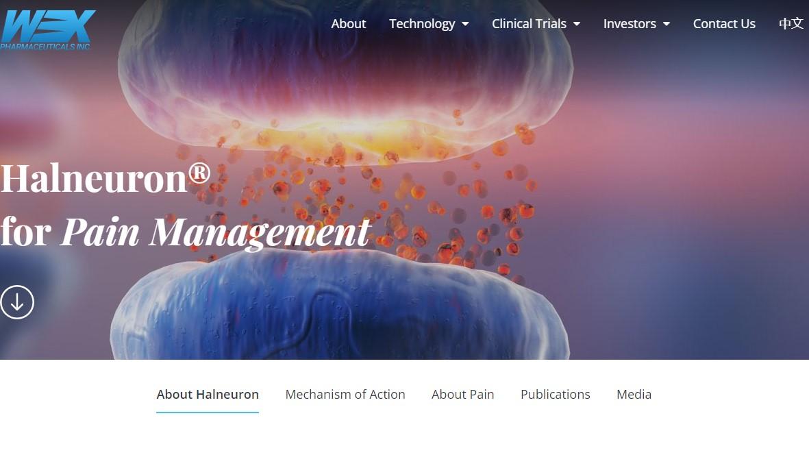 長江生命鎮痛藥物Halneuron®獲多地授權進行臨床試驗。圖為其網站。