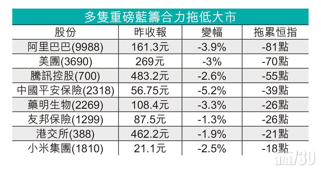 除科技股外,中國平安保險(2318)昨亦大跌5.2%,為表現最差藍籌;部分內房則見反彈,碧桂園(2007)大升3.3%,華潤置地(1109)揚2.7%,為兩大表現最好藍籌。